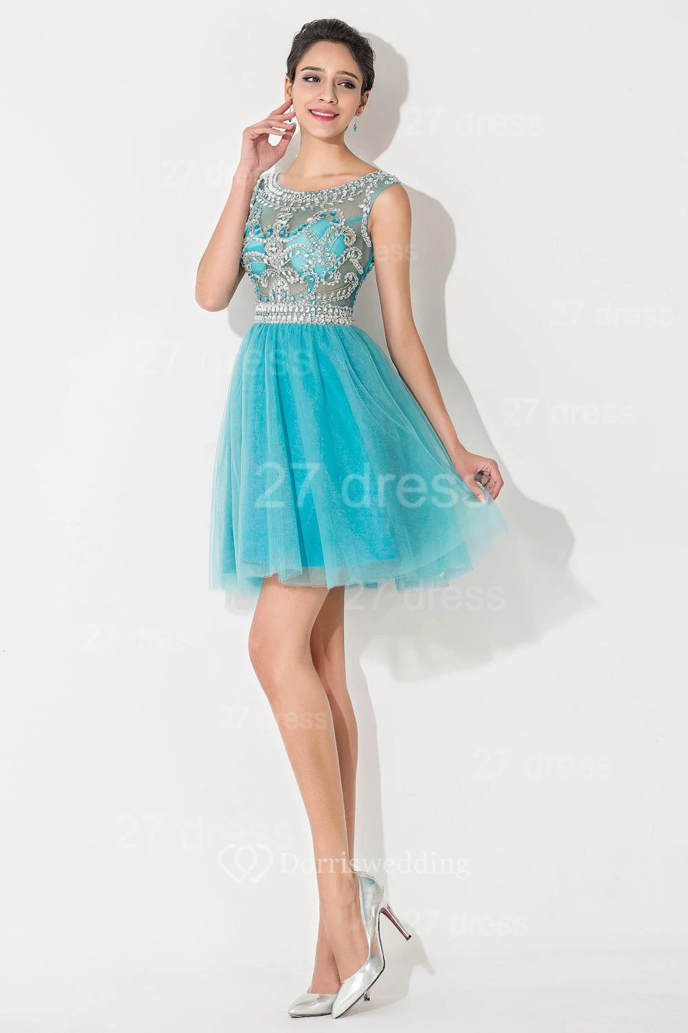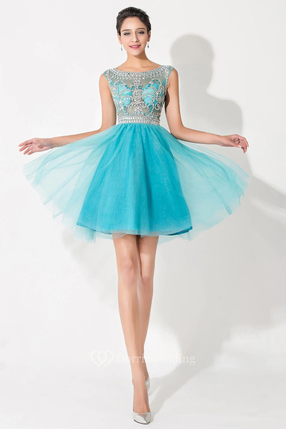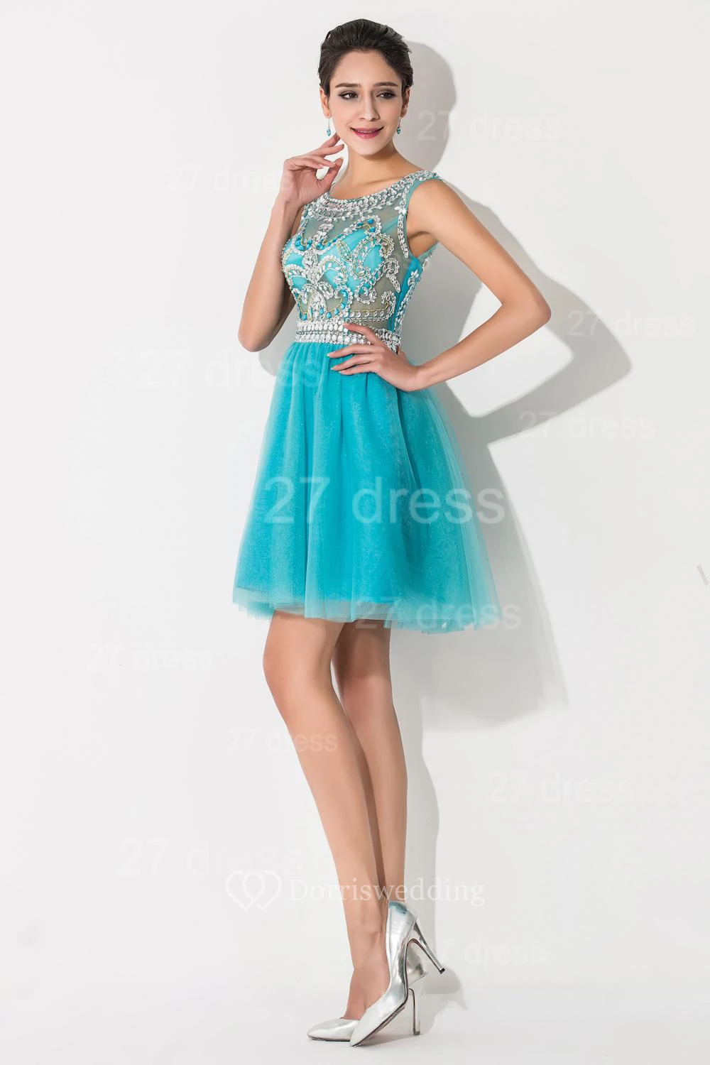 Modern Illusion Cap Sleeve Tulle Homecoming Dress With Crystals