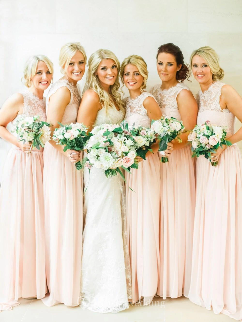 Modern Illusion Chiffon Bridesmaid Dress Lace Floor-length Zipper