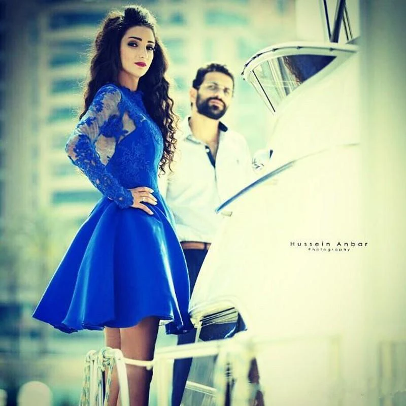 Modern Jewel Royal Blue Homecoming Dress Long Sleeve With Lace Appliques