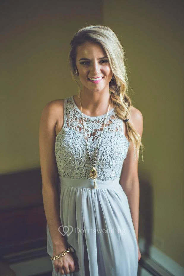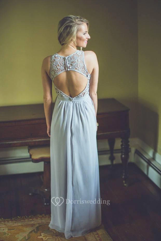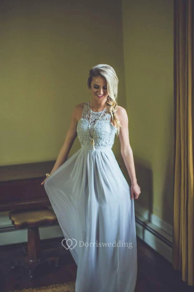 Modern Lace Illusion A-line Prom Dress Chiffon Zipper Floor-length