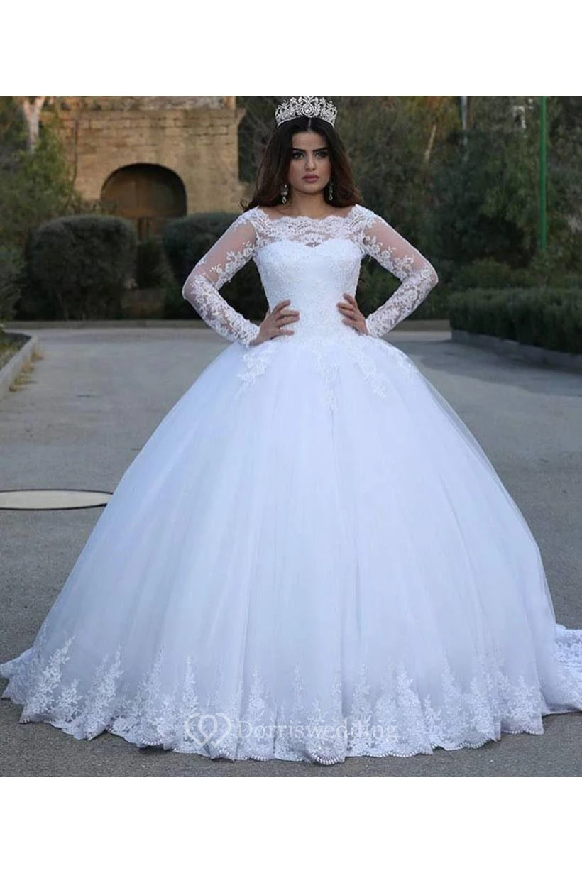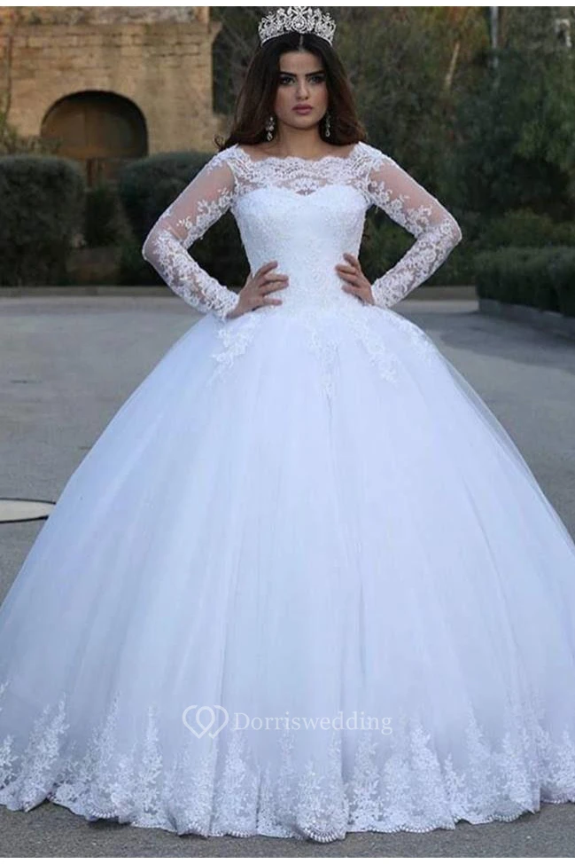 Modern Long Sleeve Lace Wedding Dresses Tulle Ball Gown