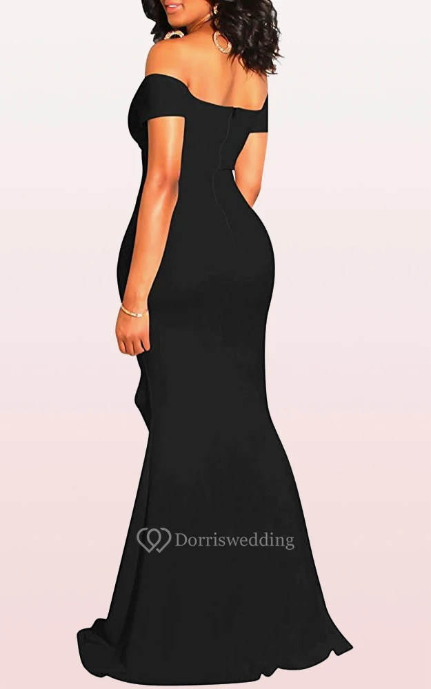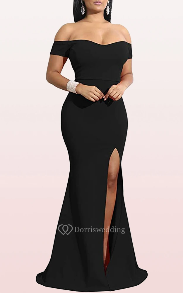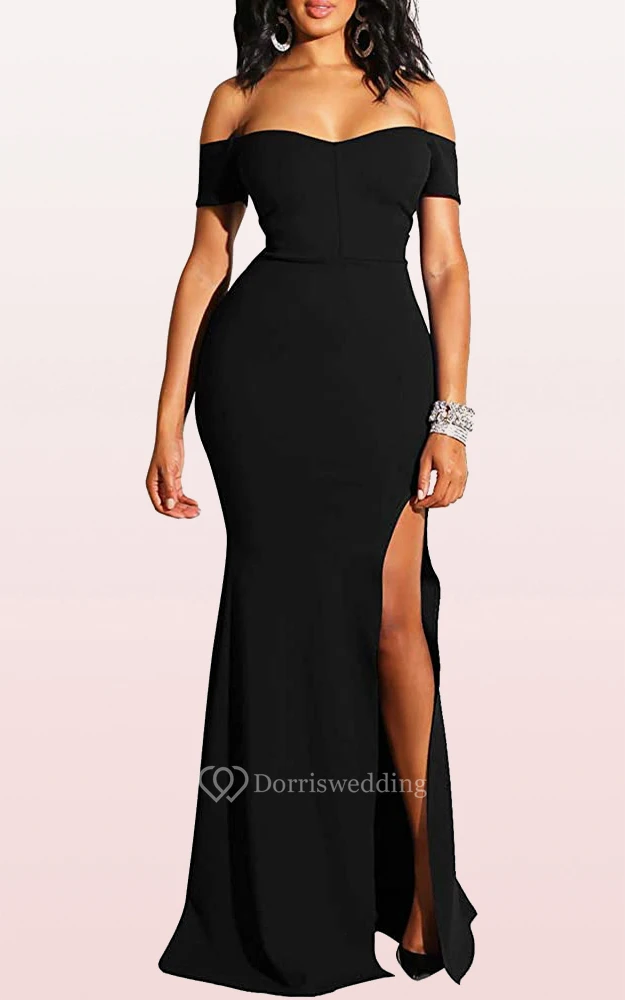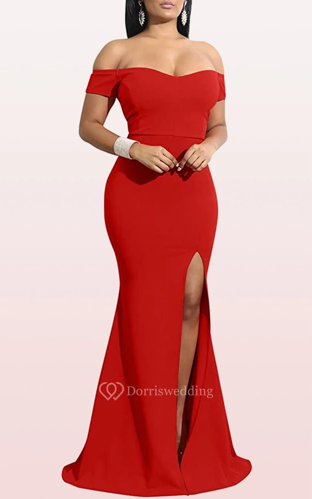 Modern Off-the-shoulder Jersey Mermaid Sleeveless Guest Formal Dress With Split Front