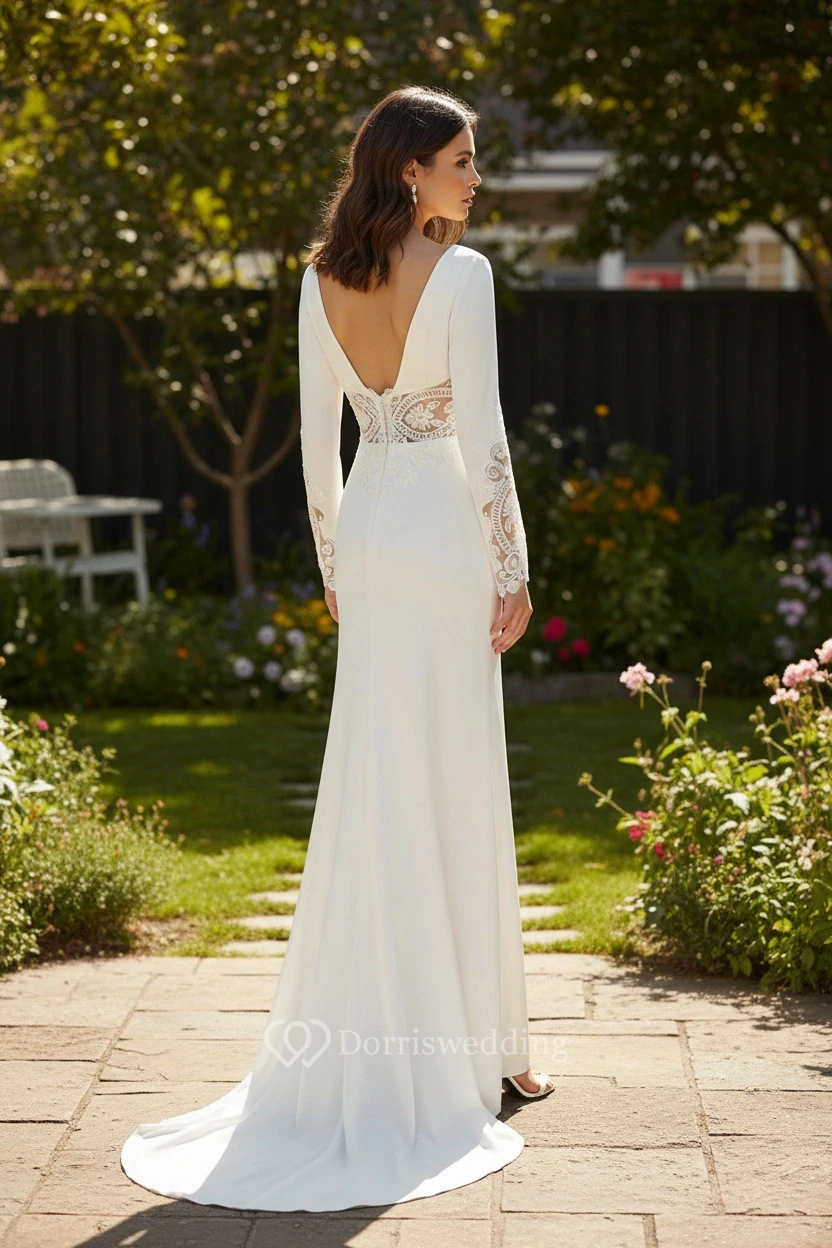 • Hemline/Train: Floor-length, Sweep/Brush Train