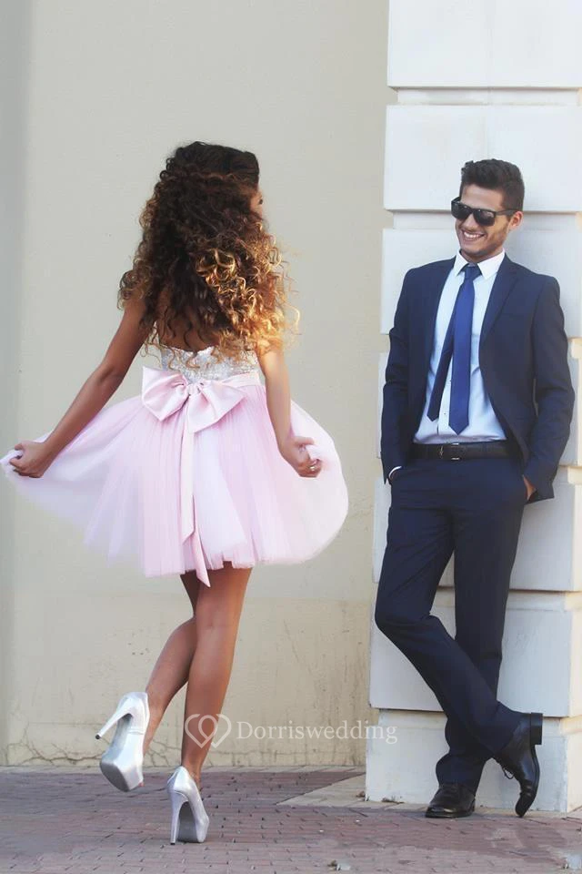 Modern Sweetheart Sleeveless Short Homecoming Dress With Bowknot Sequins