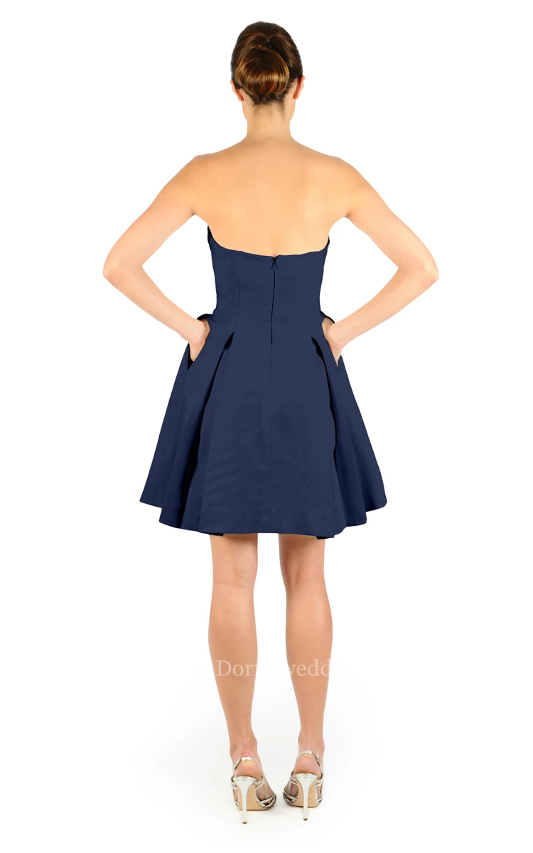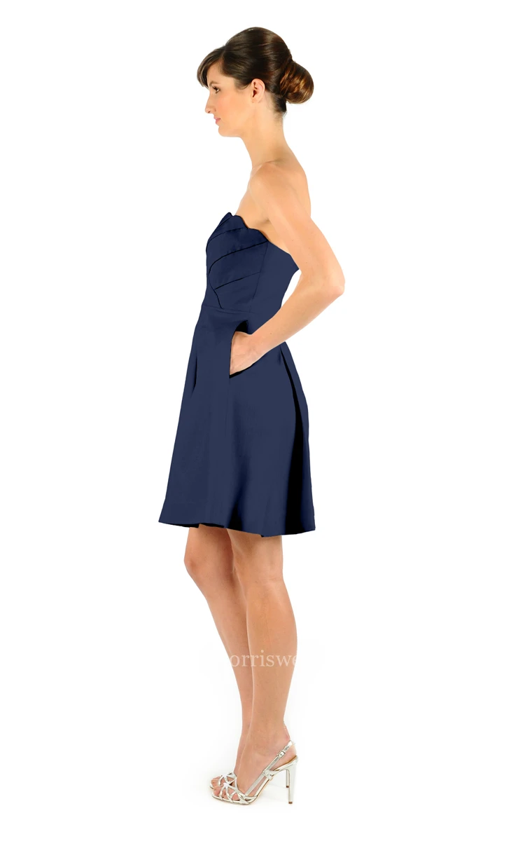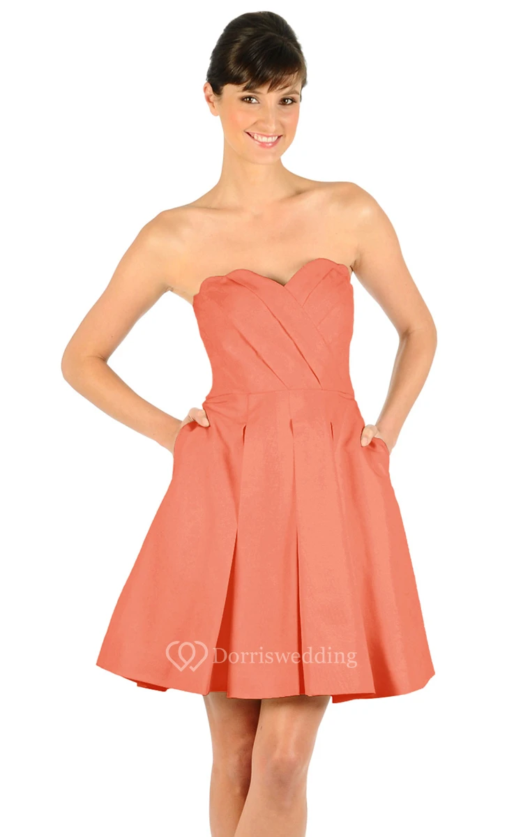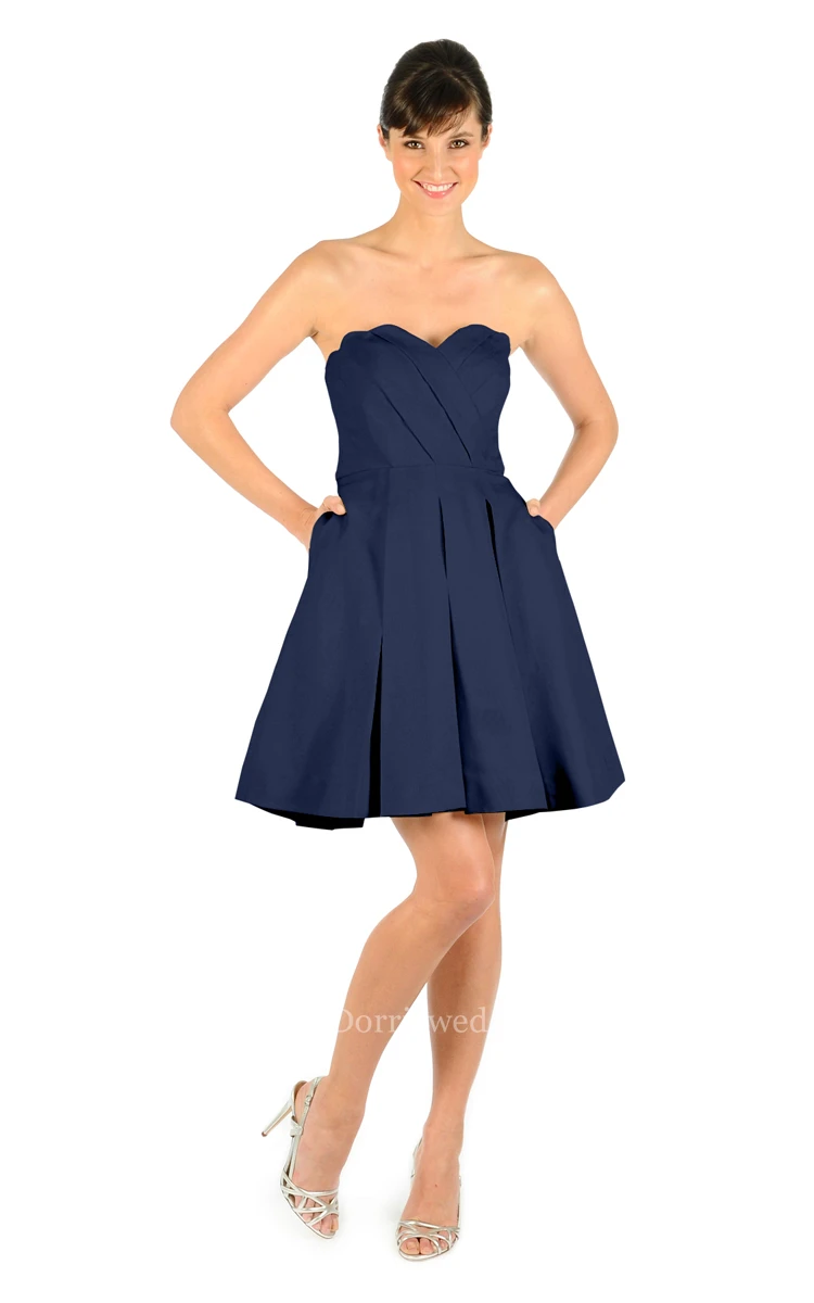 Modern Sweetheart Strapless Crisscross Ruched Mini Satin Dress