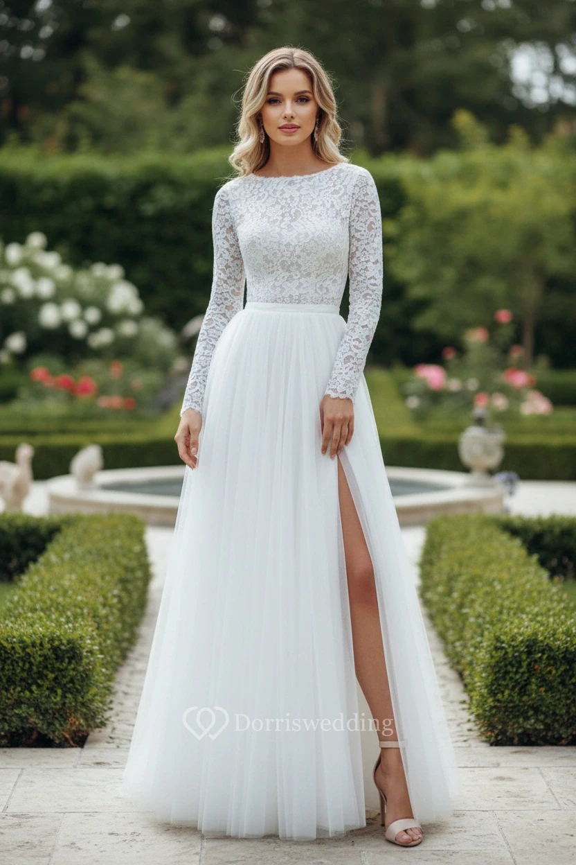 • Hemline/Train: Floor-length, Sweep/Brush Train