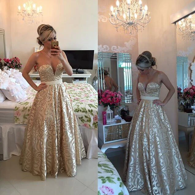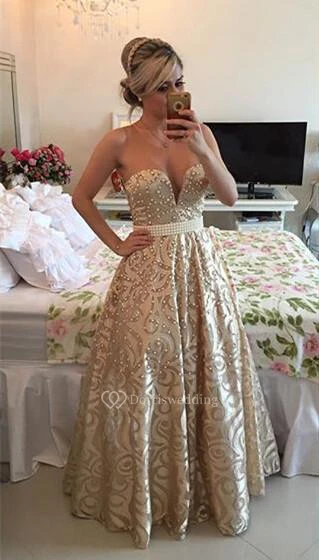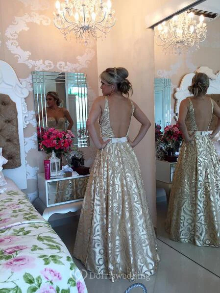 Modern V-neck Sleeveless Pearls Prom Dress Open Back Floor-length