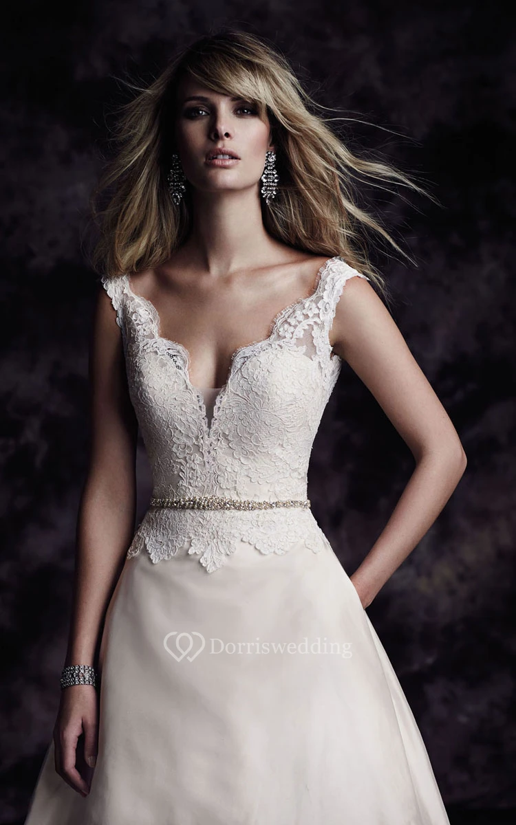 Modern V-Neck Taffeta Ball Bridal Gown With Deep-V Back