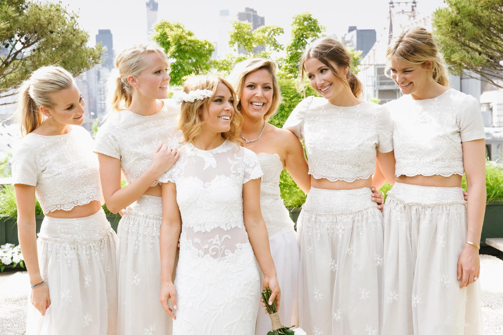 Modern White Two Piece A-line Modest Bridesmaid Dress Lace Short Sleeve Jewel