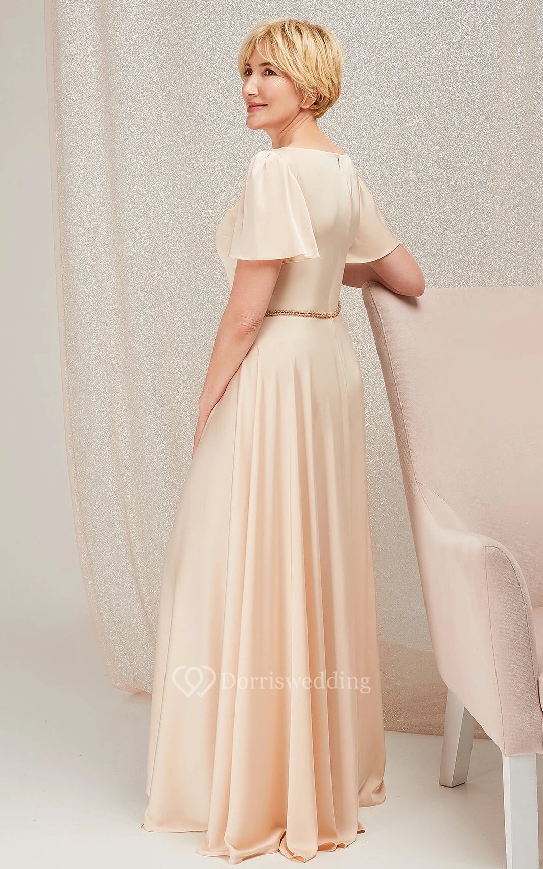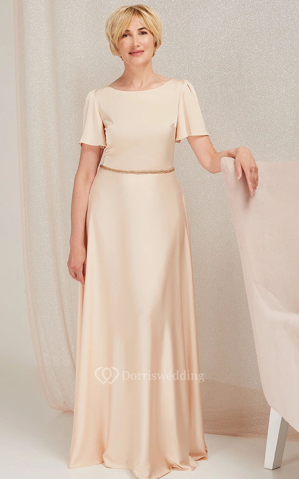 Modest A Line Satin Bateau Floor-length Mother of the Bride Dress with Beading