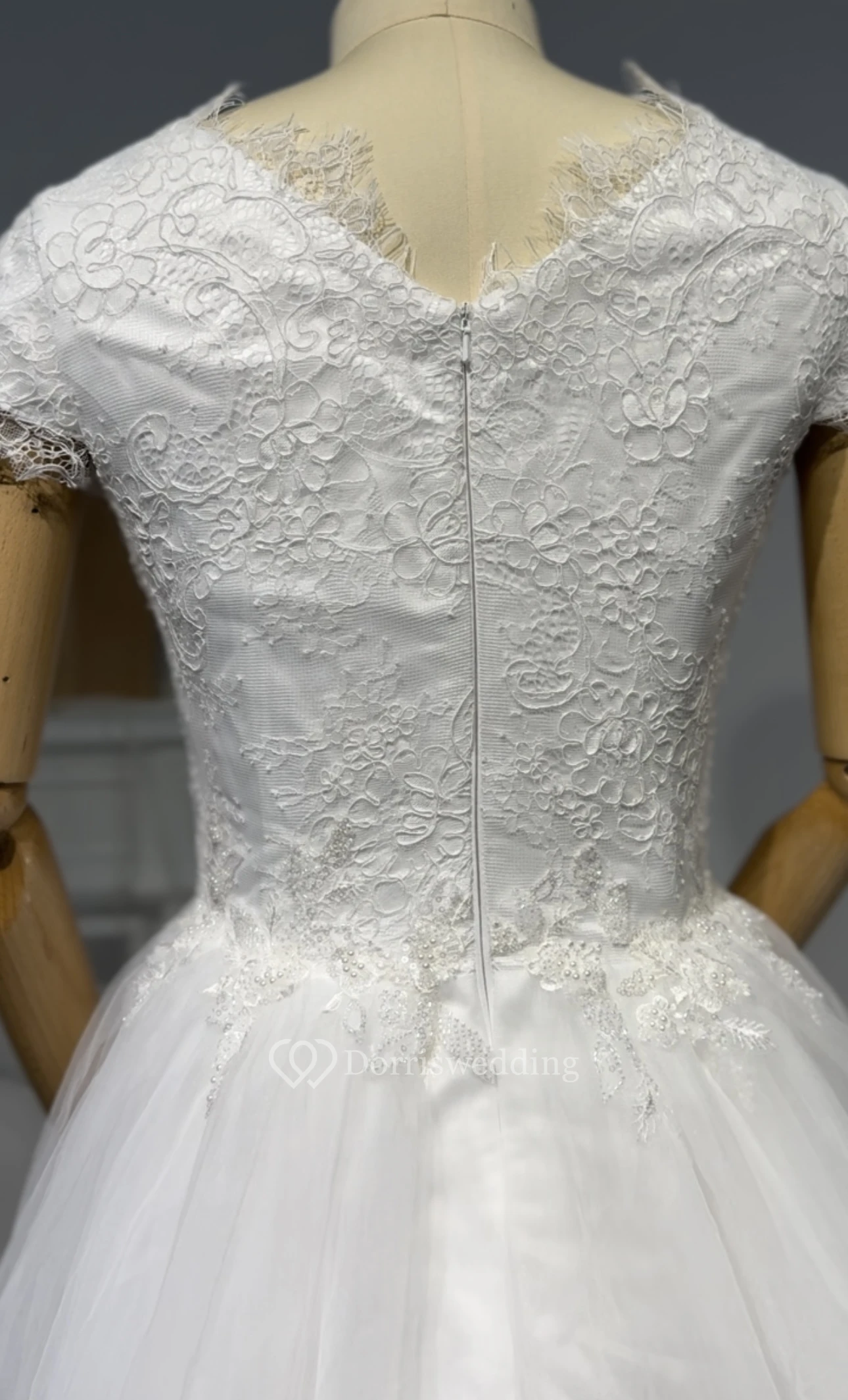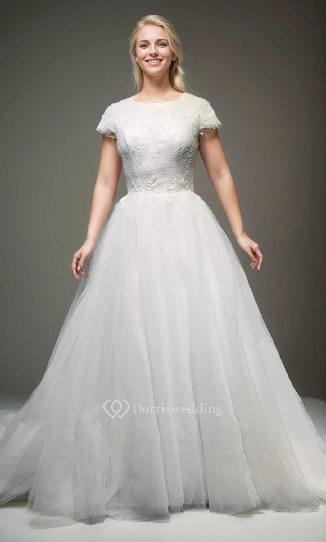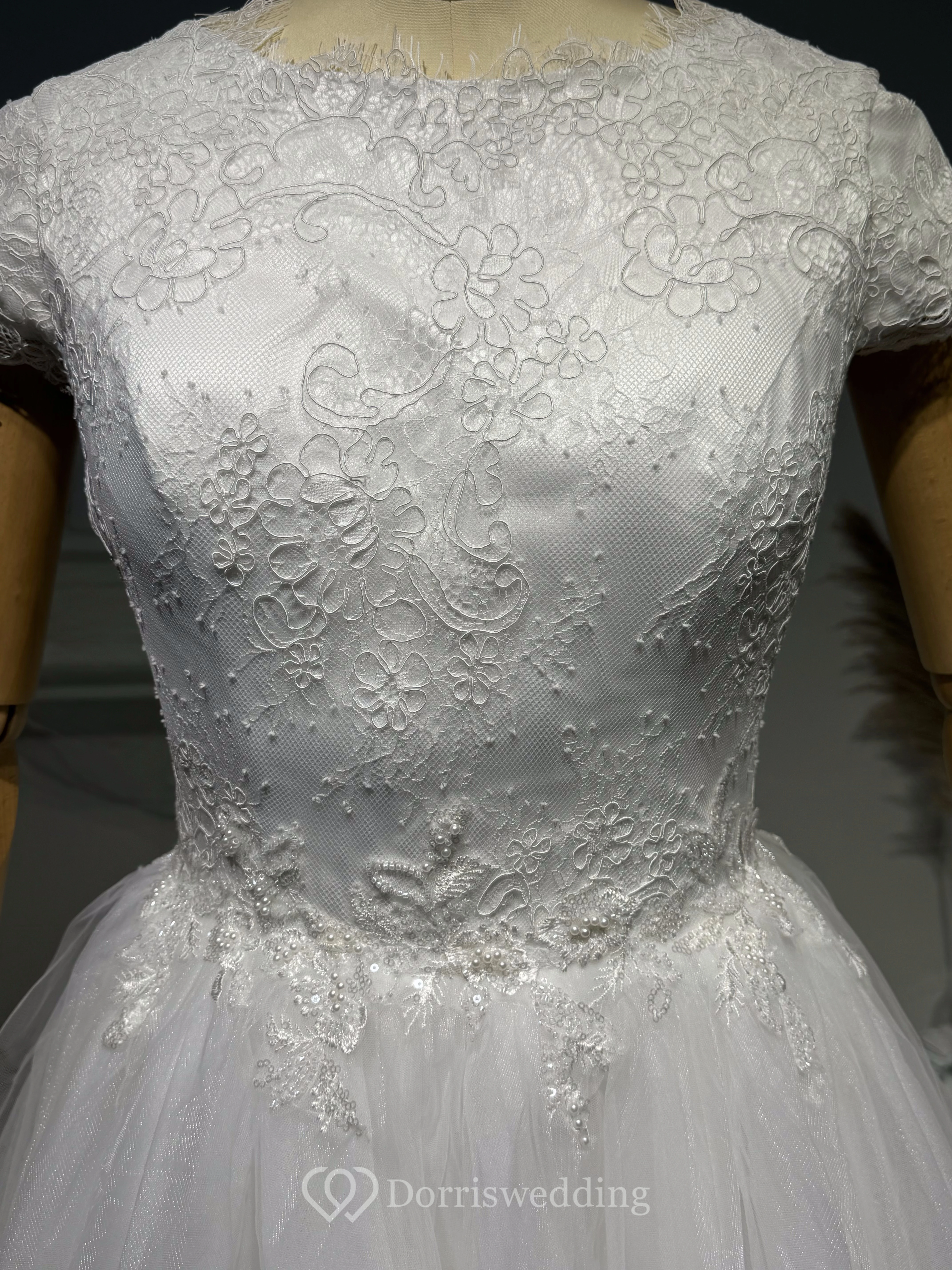 Modest Cap Scoop A-line Country Lace A-line Wedding Gown