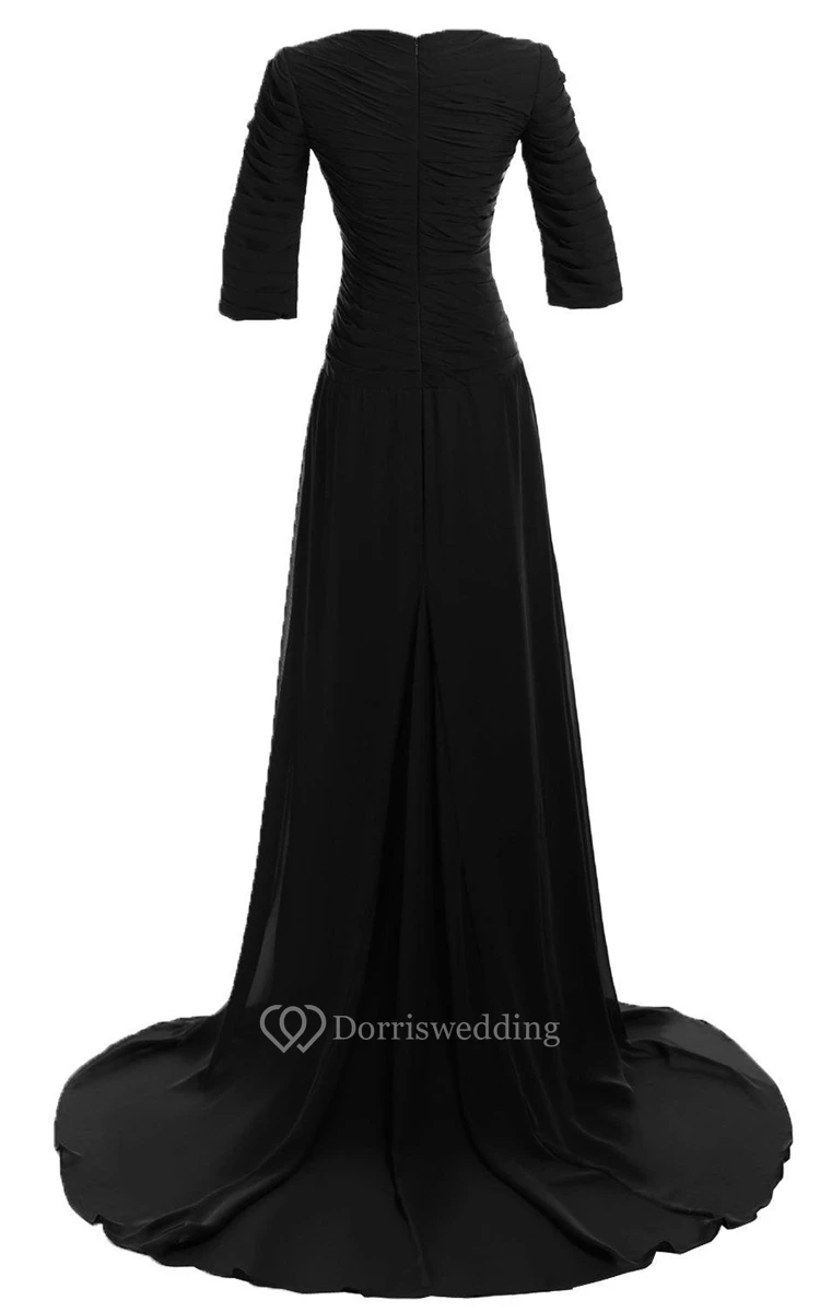 Modest Chiffon Long Sleeve Gown With Ruched Bodice