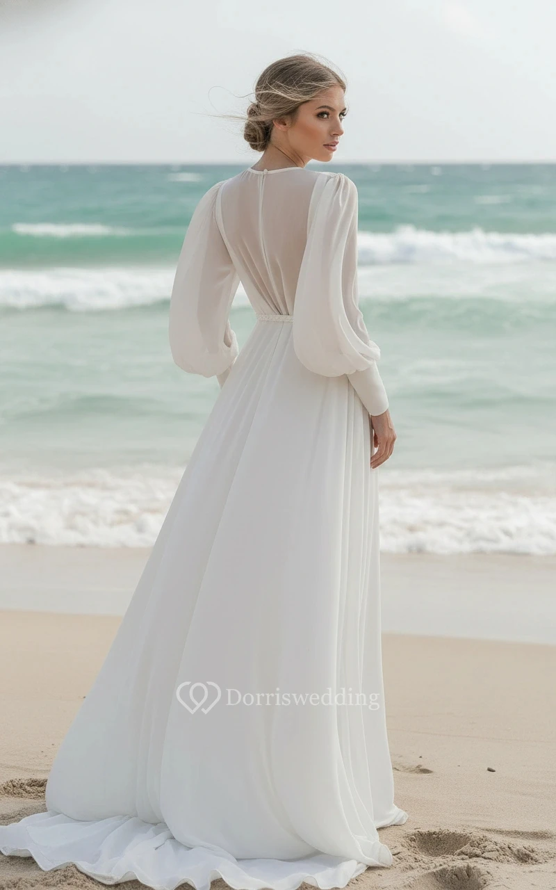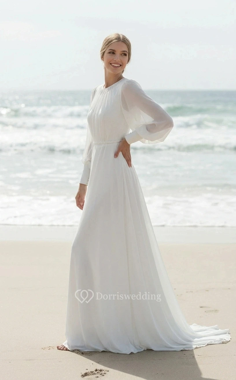 Modest Flowy Long Sleeve Bridal Wear