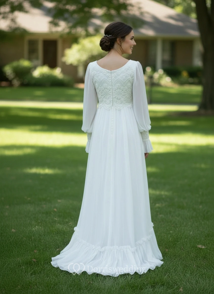 Modest Long Sleeve Chiffon Evening Wear