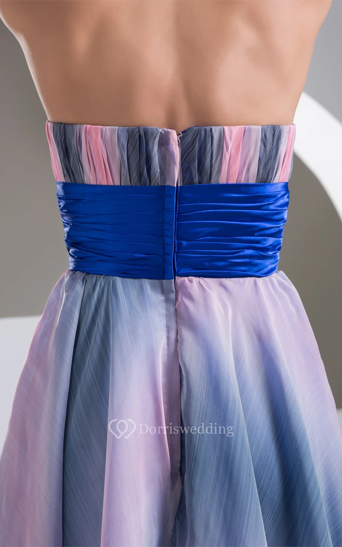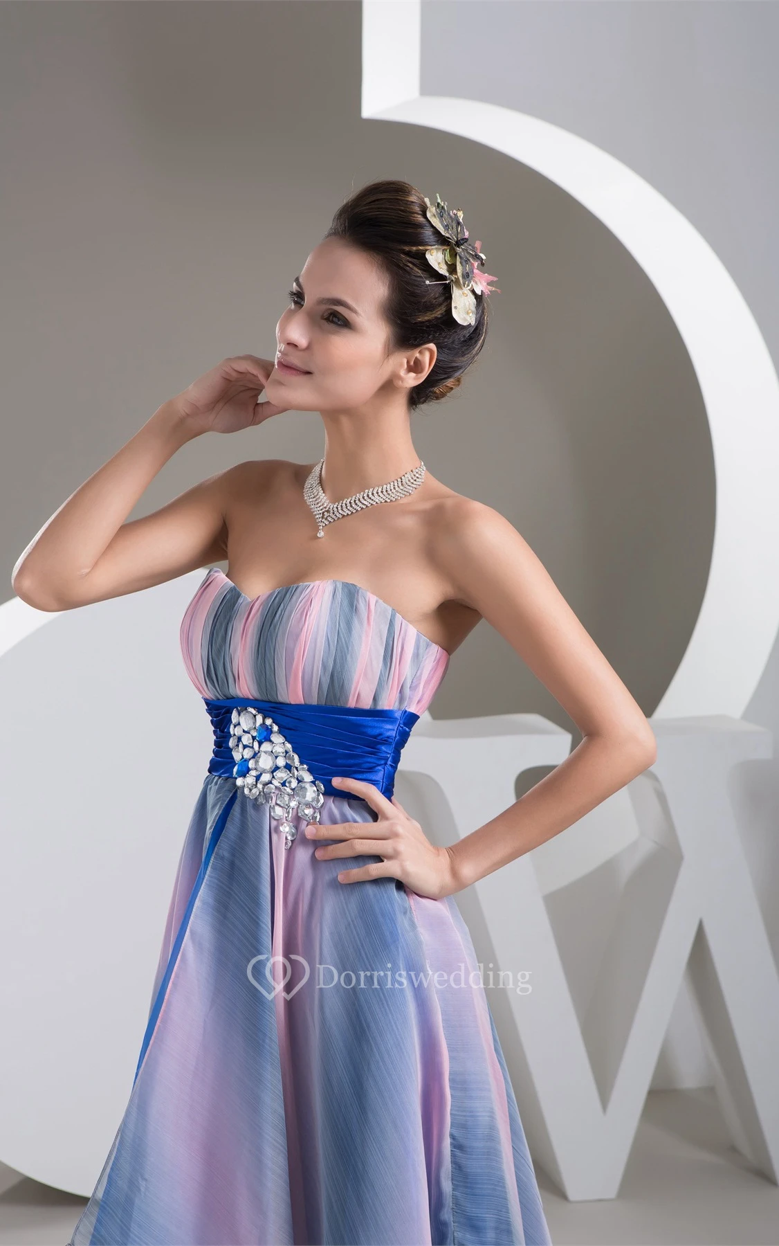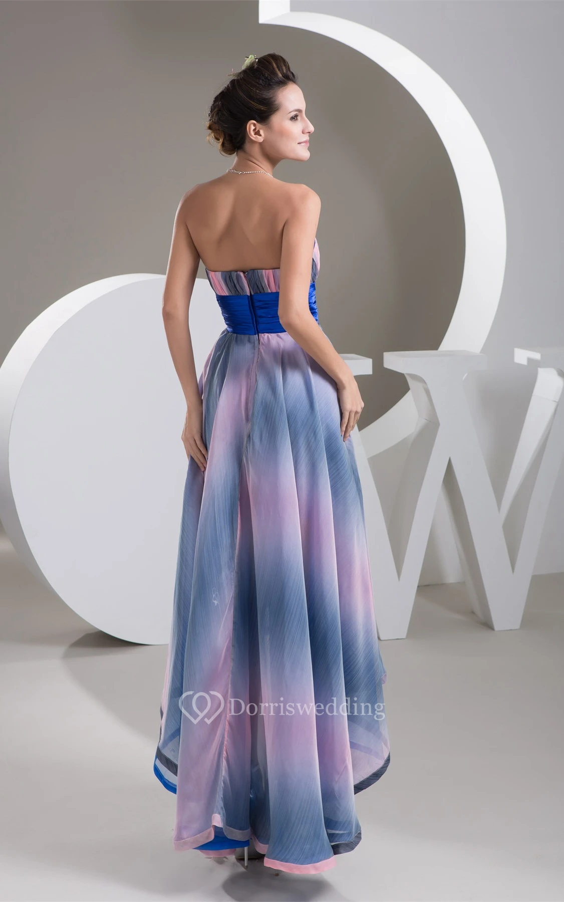 Mute-Color Ruched High-Low Rhinestone and Dress With Pleats
