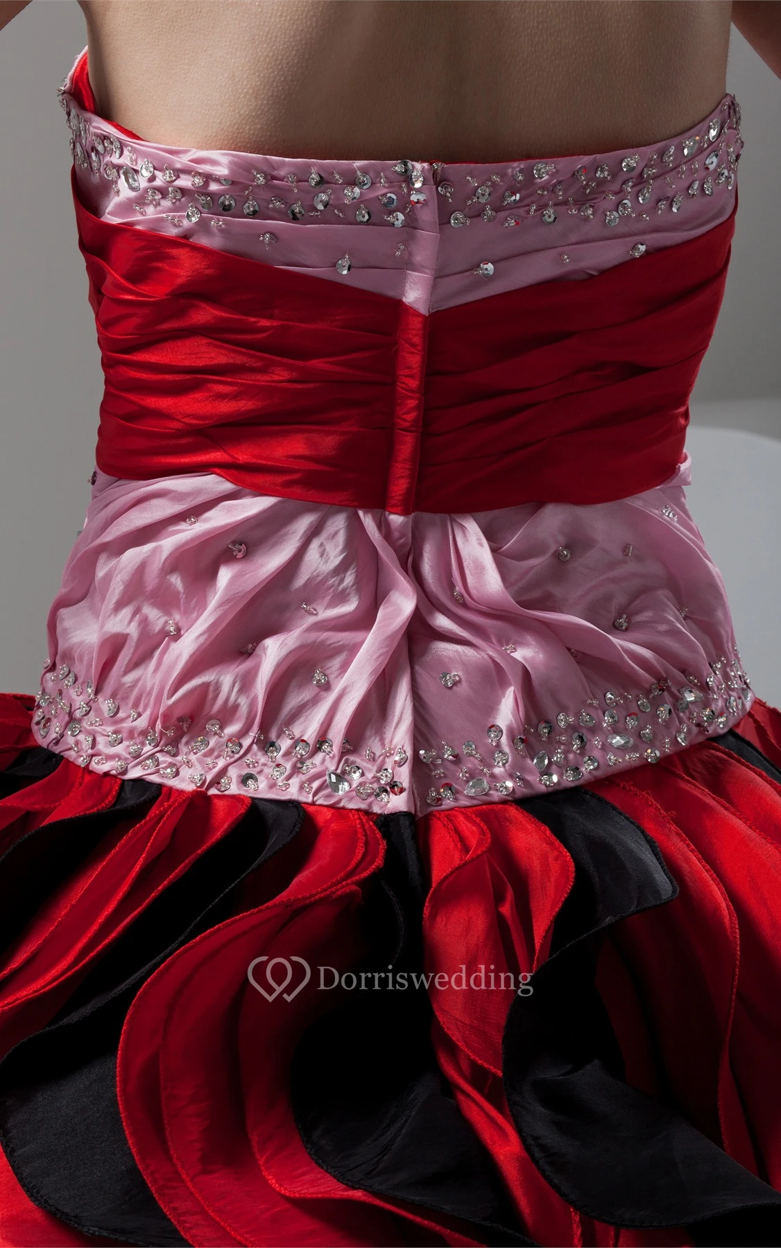 Mute-Color Ruffled Stress and Ball-Gown With Broach
