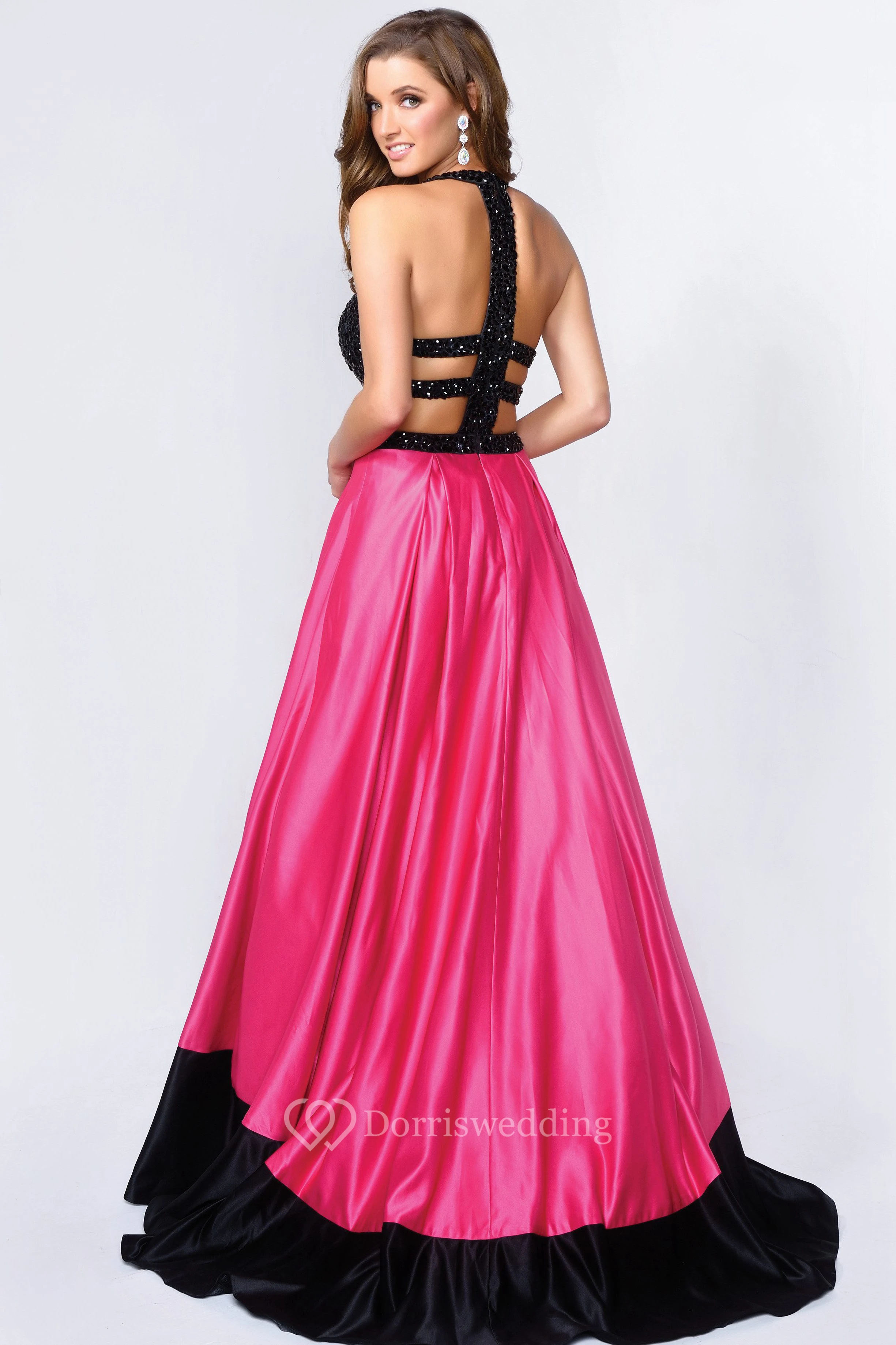 Muti-Color A-Line Jewel-Neck Sleeveless Satin Dress With Beading