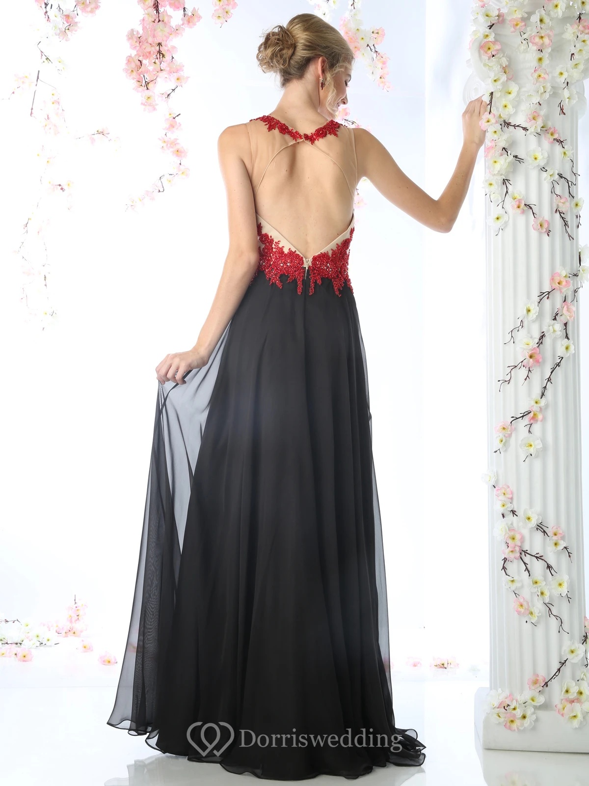 Muti-Color A-Line Maxi Jewel-Neck Sleeveless Chiffon Keyhole Dress With Appliques