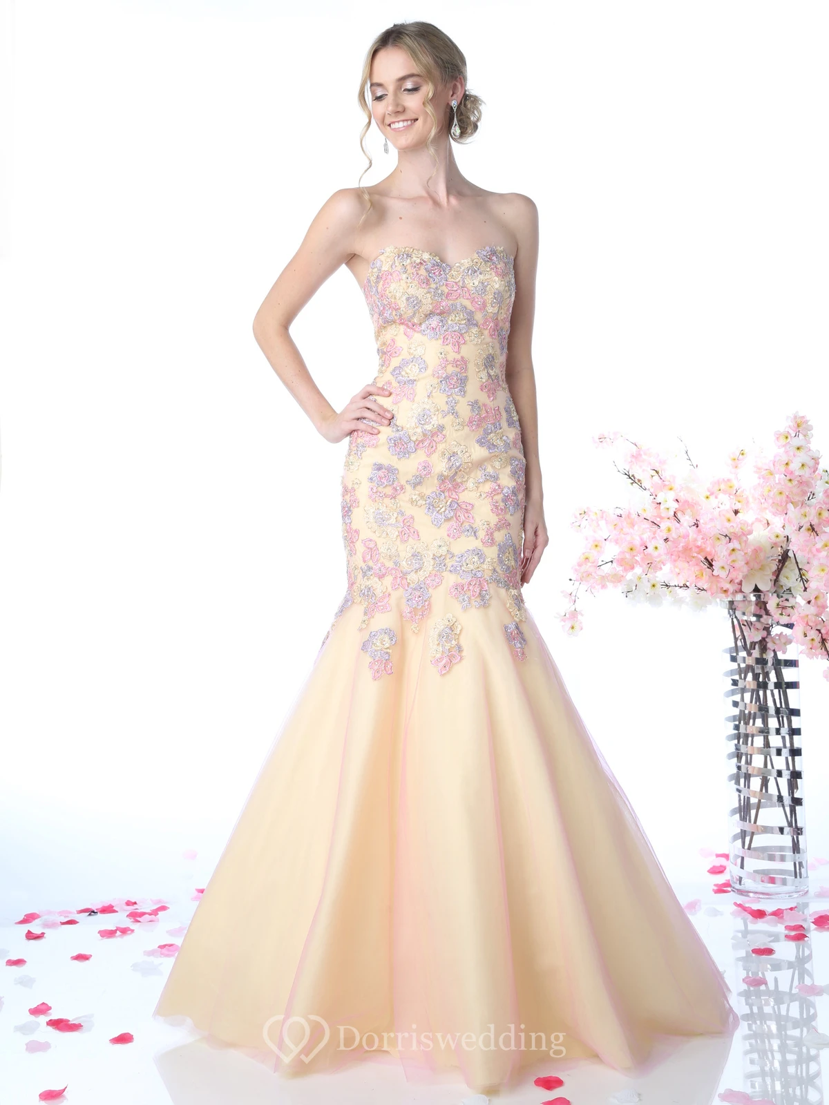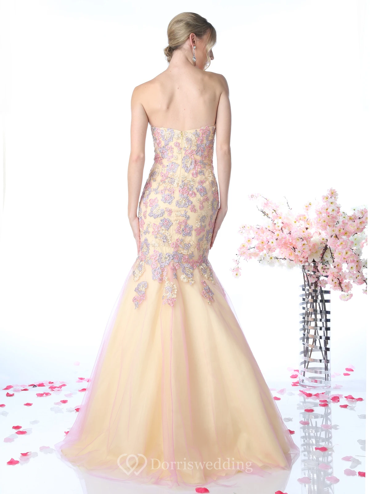 Muti-Color Mermaid Maxi Sweetheart Sleeveless Backless Dress With Appliques And Flower
