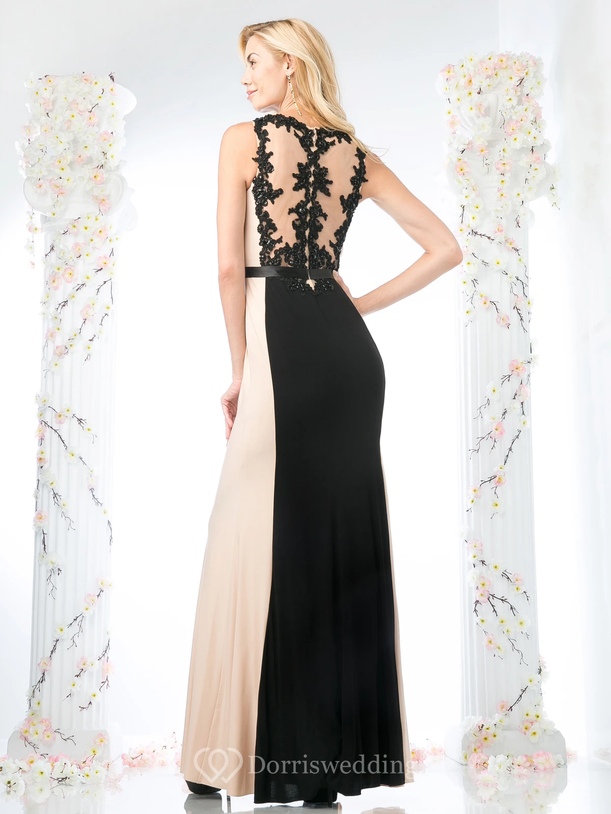 Muti-Color Sheath Scoop-Neck Sleeveless Jersey Illusion Dress With Appliques