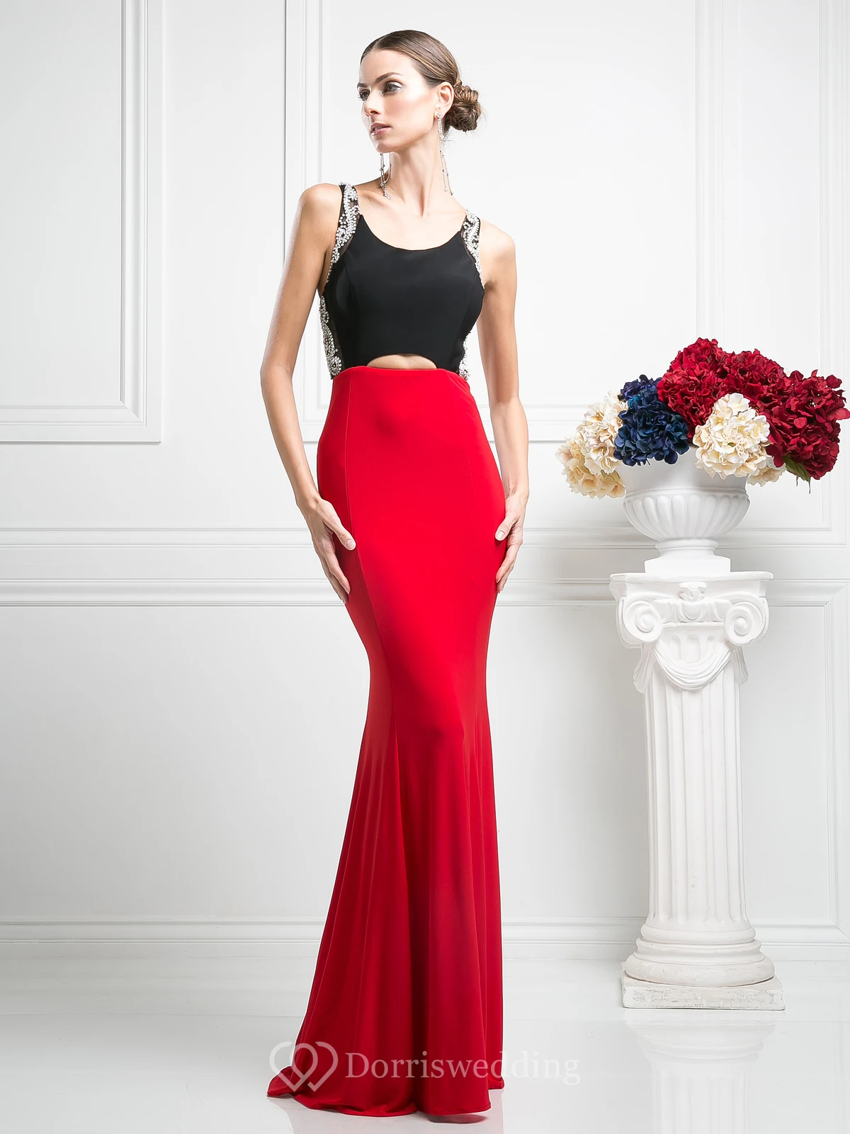 Muti-Color Sheath Scoop-Neck Sleeveless Jersey Keyhole Dress With Beading