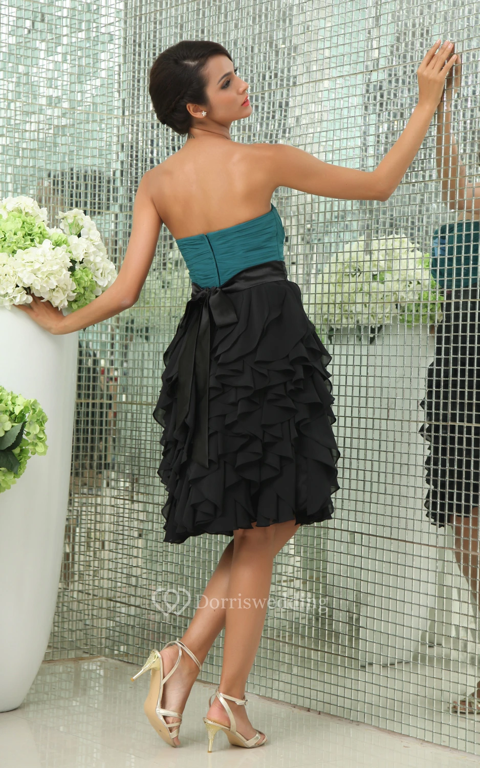 Muti-Color Sweetheart Chiffon Dress With Ruching and Cascading Ruffles
