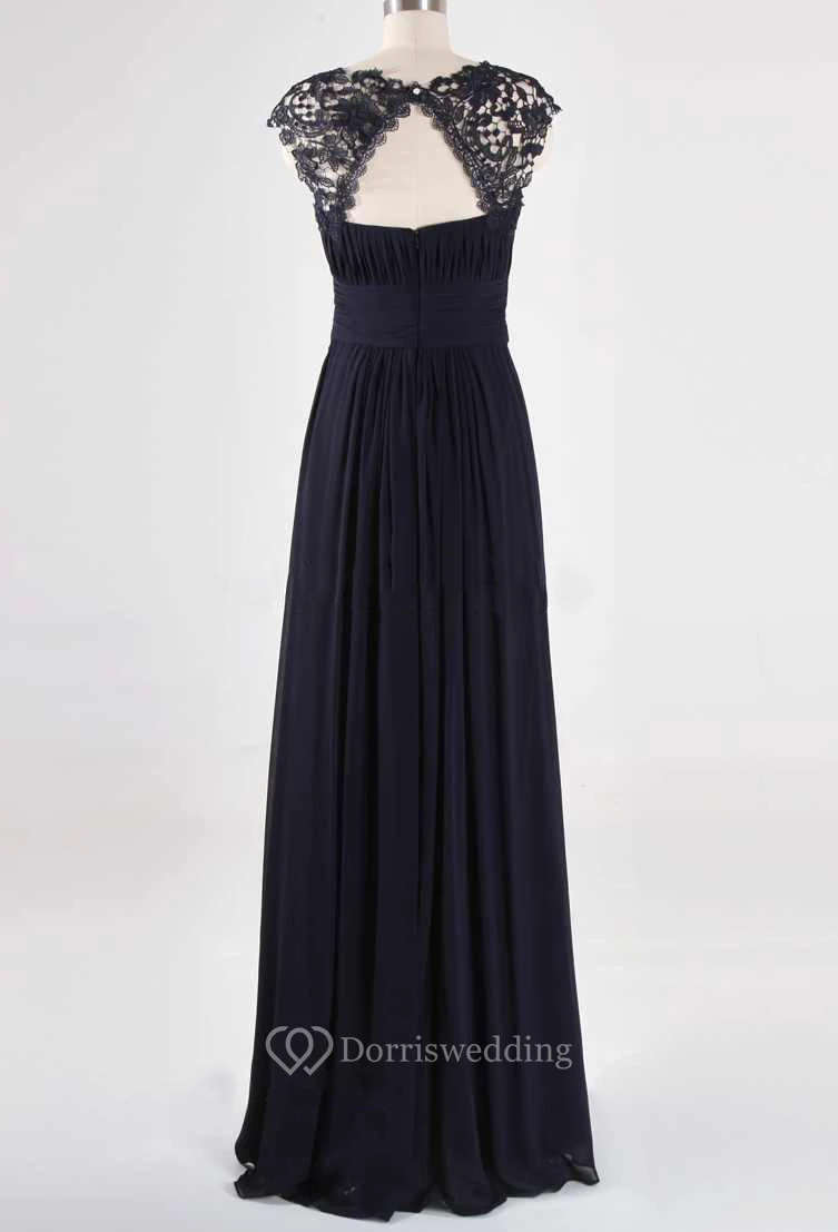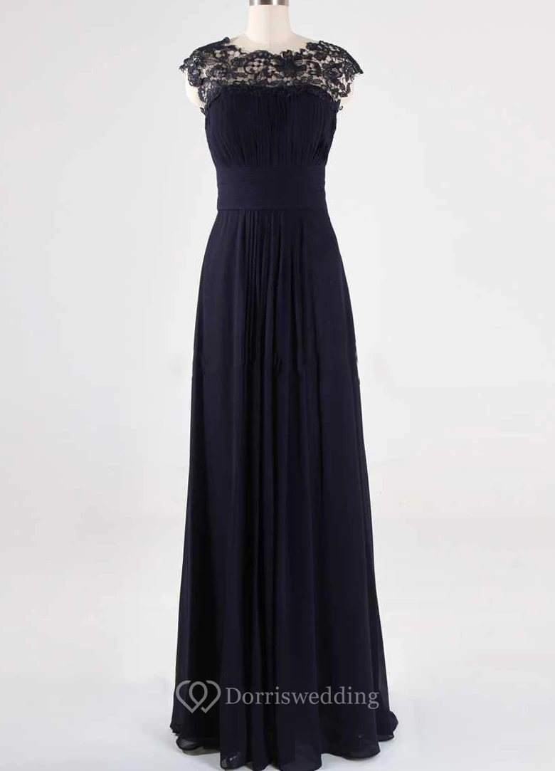 Navy Prom Lace Georgette Bridesmaid Custom Sizes Formal A Line Party Floor Length Evening Prom Long Dress
