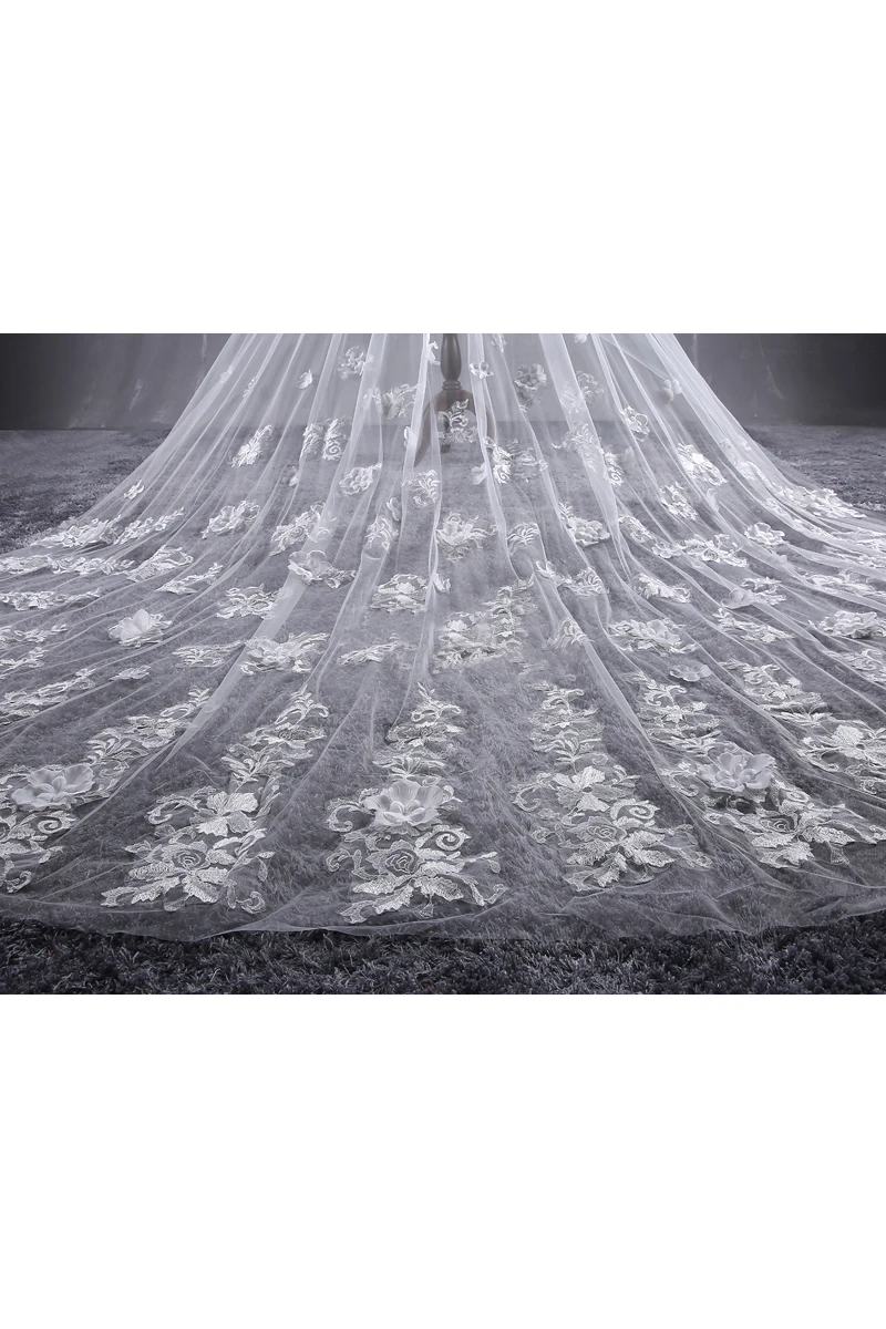 New Beautiful Long Tailed Bride Wedding Veil with Lace Flower
