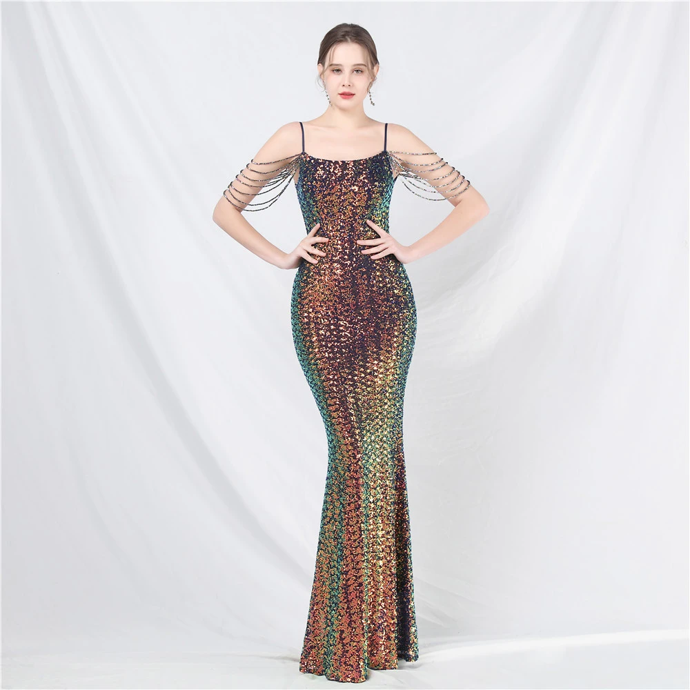 Beaded Fantasy Sequined Long Evening Dress