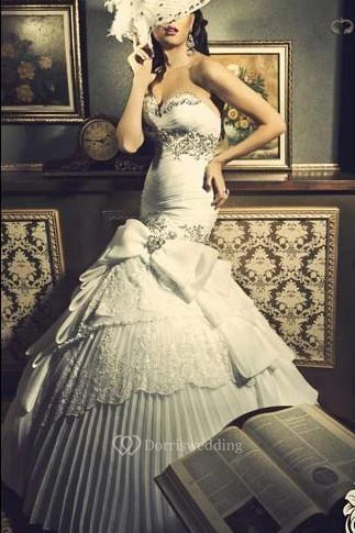 New Fashion Lace Beaded Mermaid Wedding Dresses Lace Bling Bling Wedding Gowns