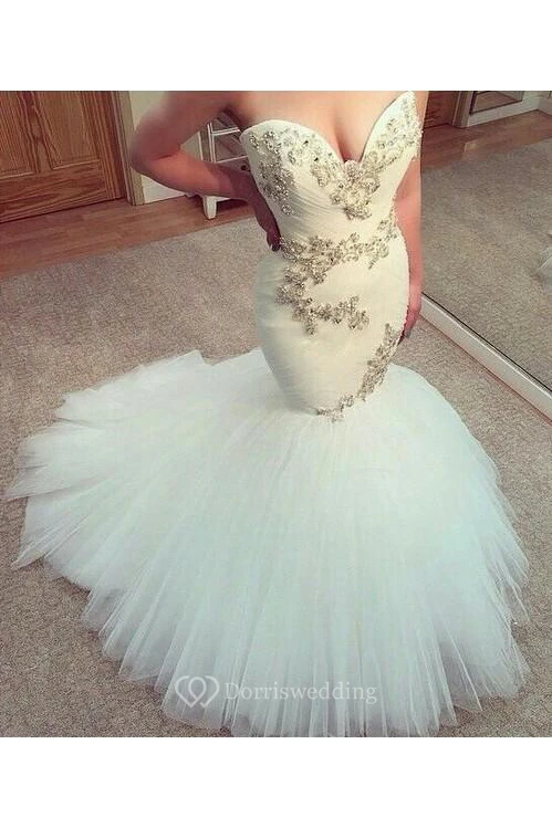 New Fashion Sweetheart Mermaid Wedding Dress Tulle Beaded