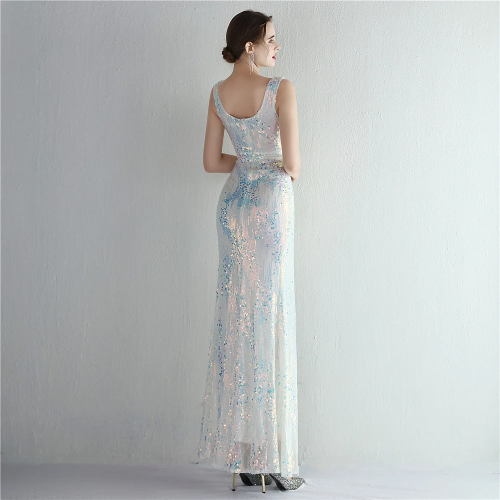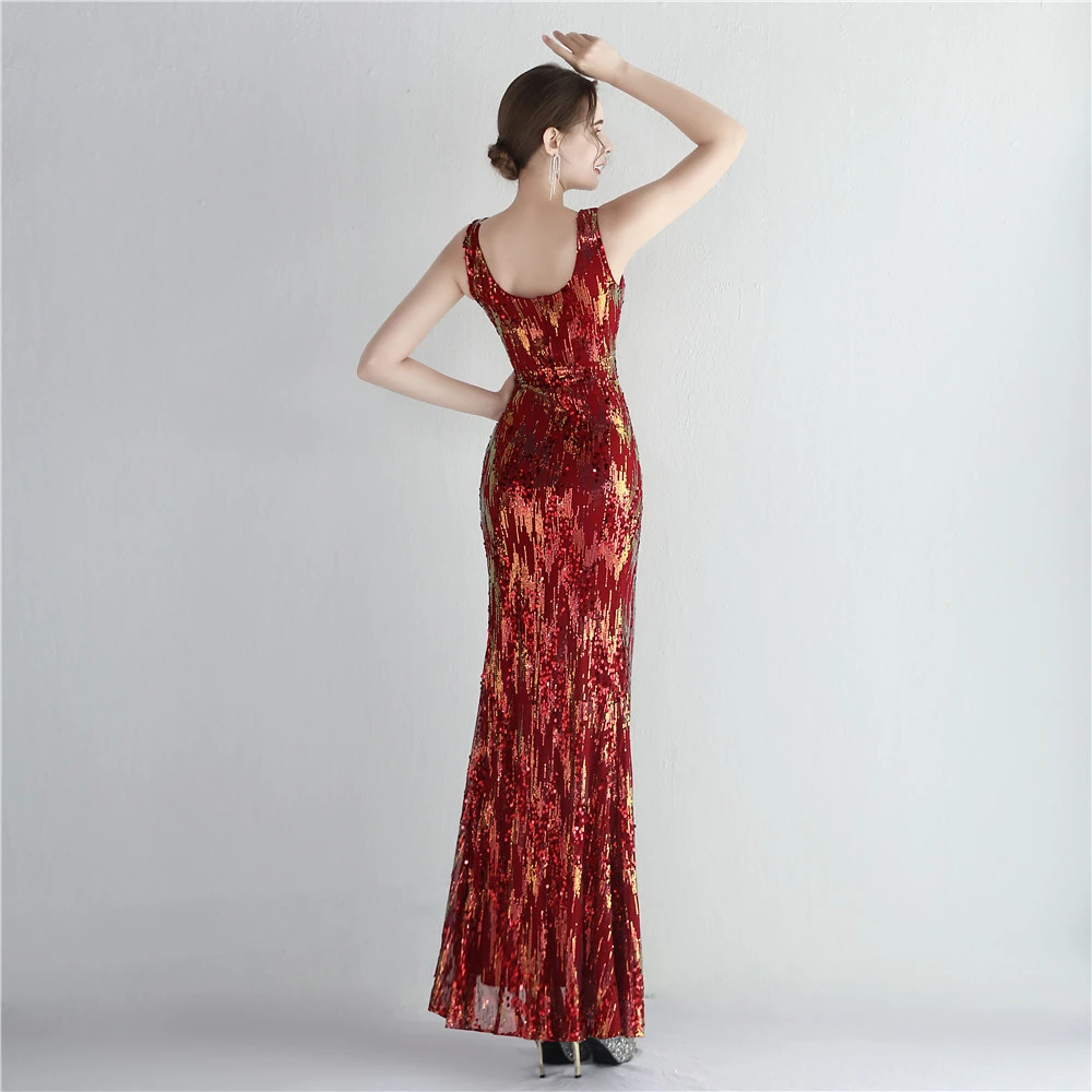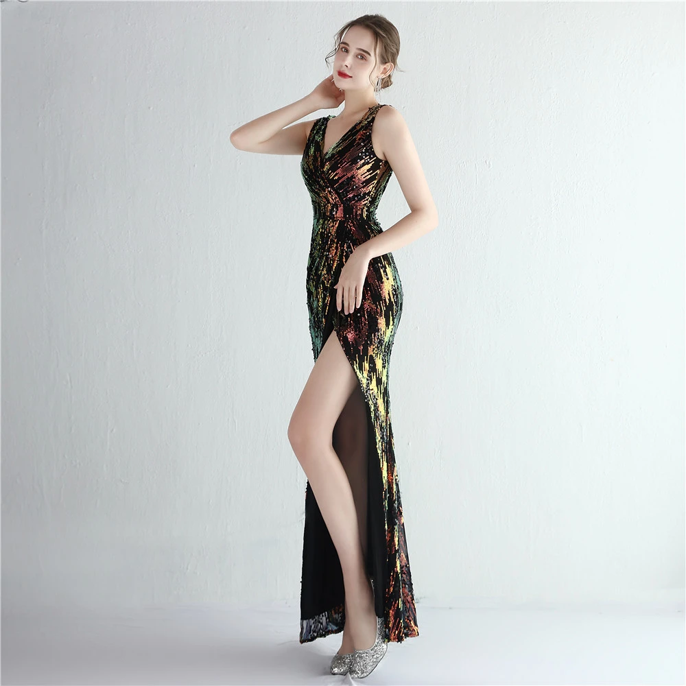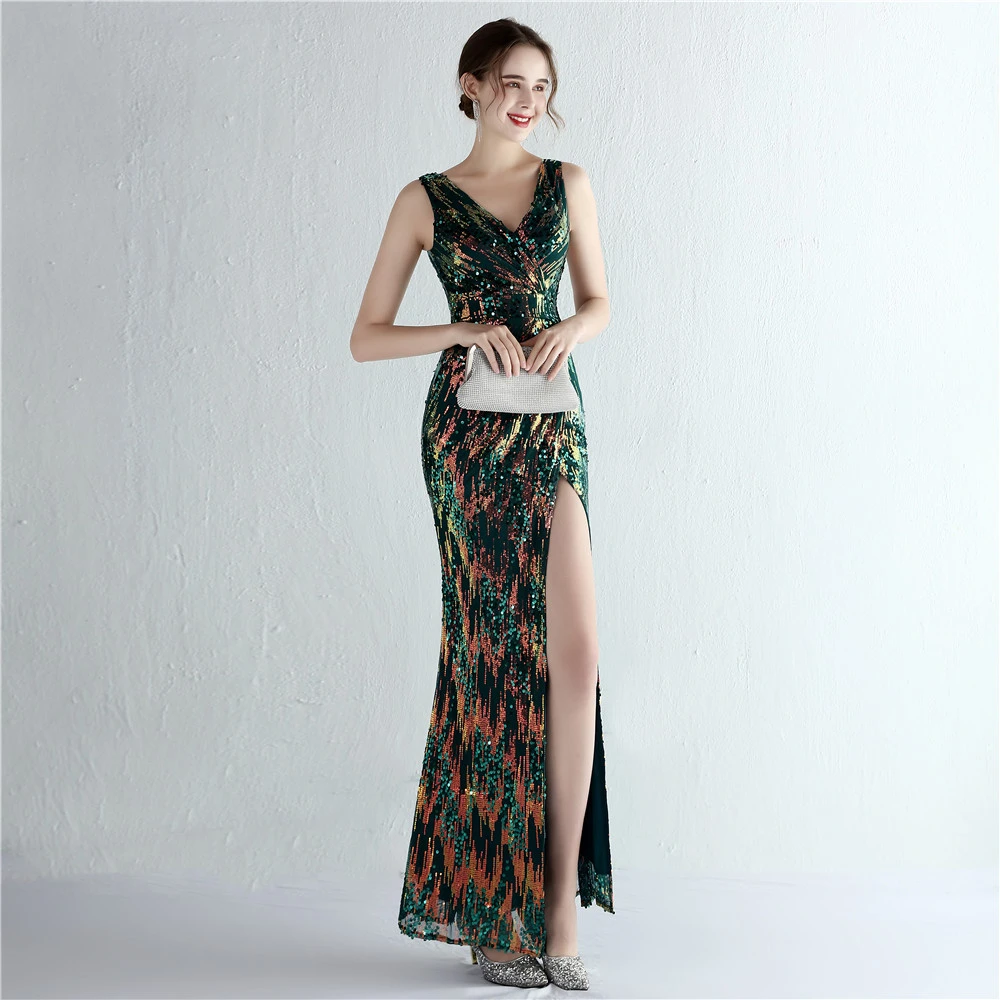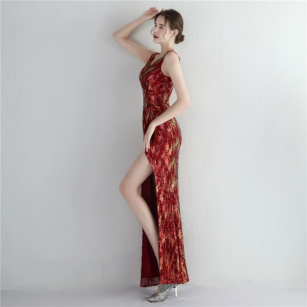 New Sequins Celebrity Banquet Temperament Split Long Sequins Aura Queen Dinner Fishtail Skirt
