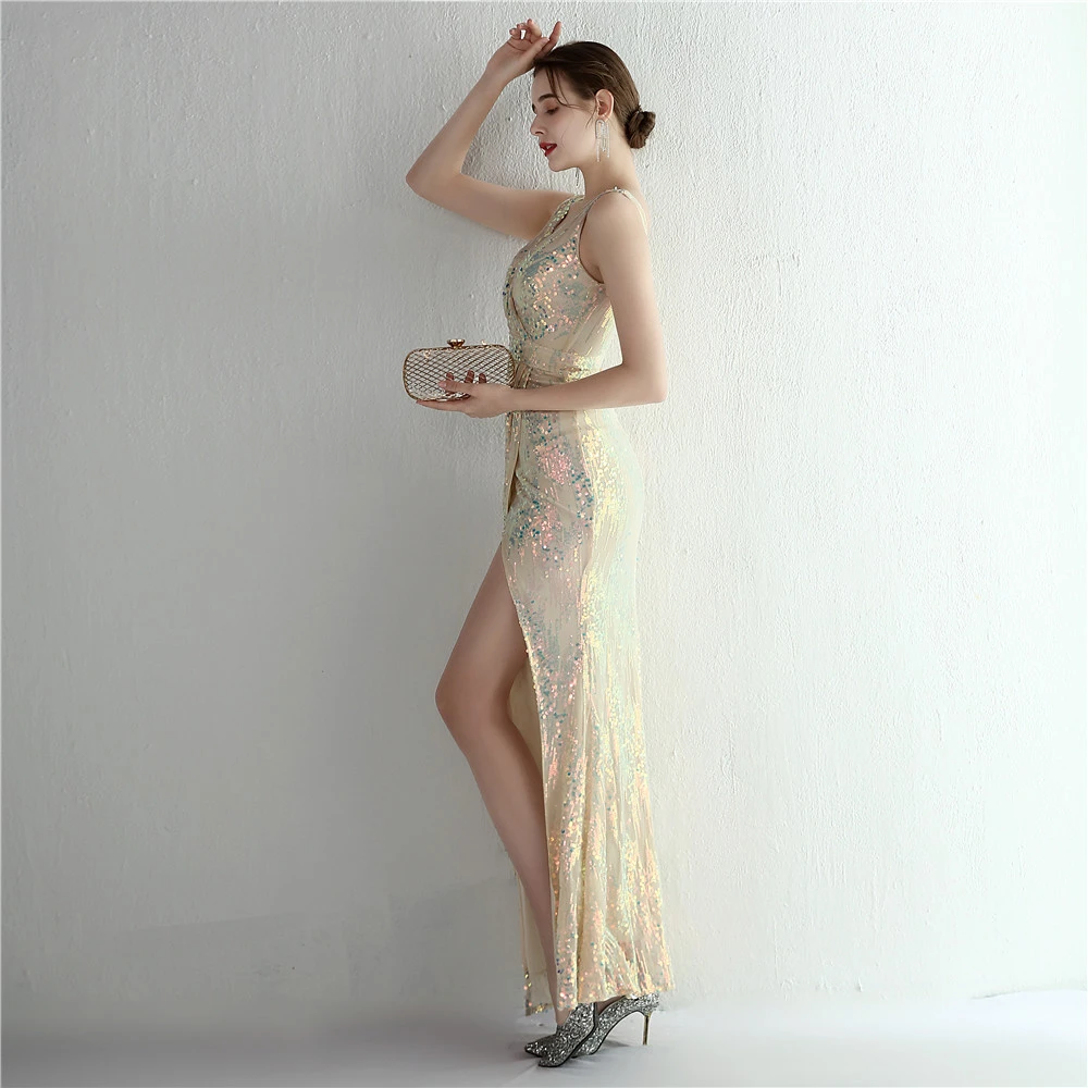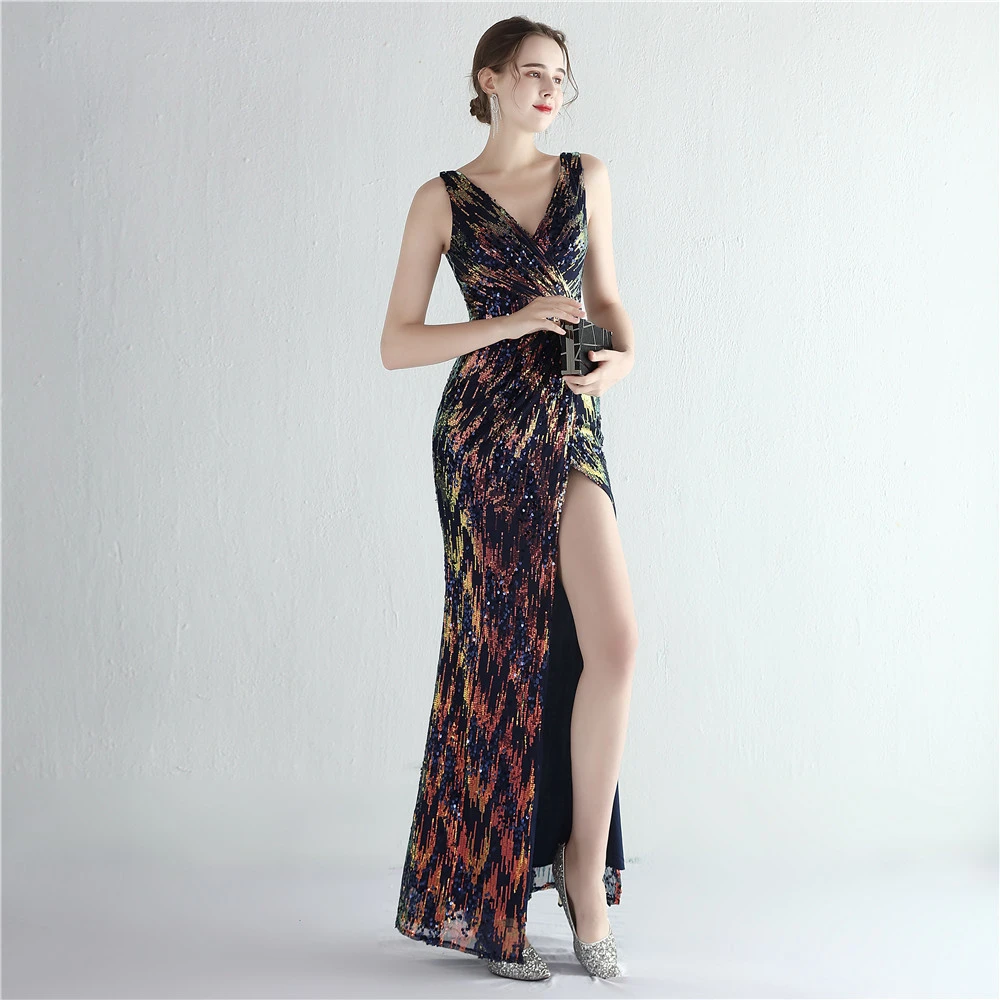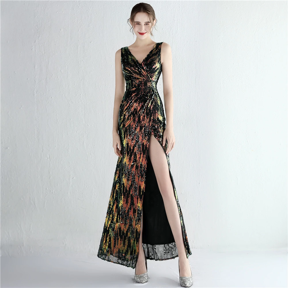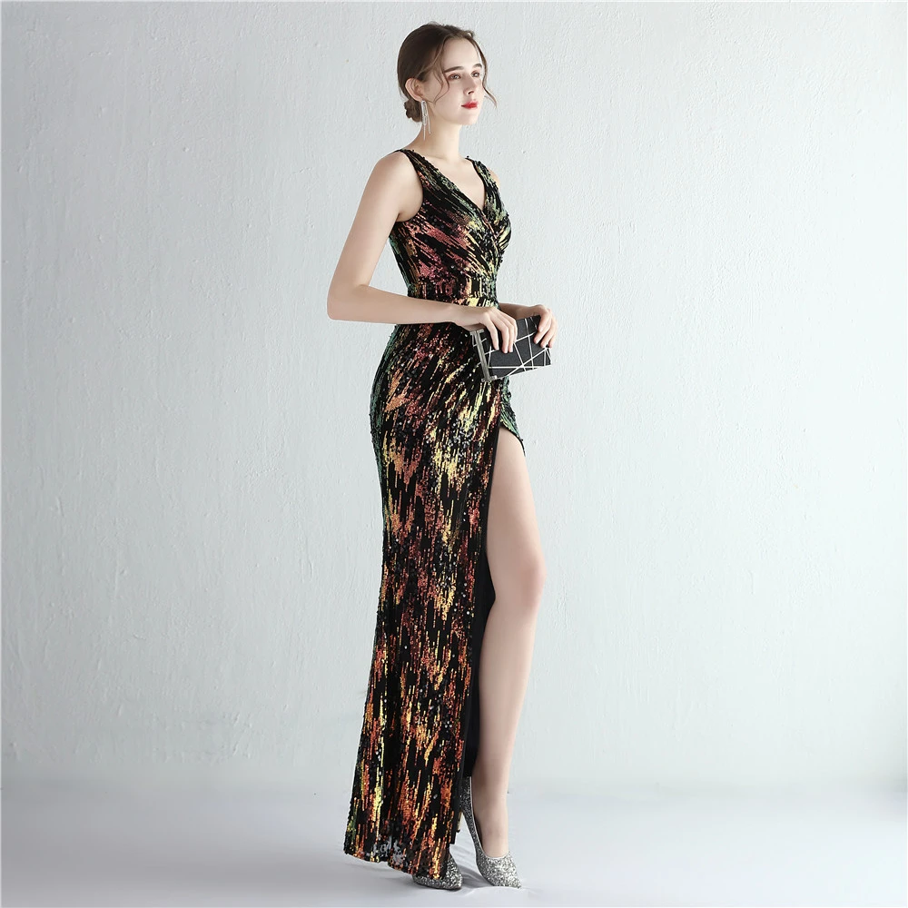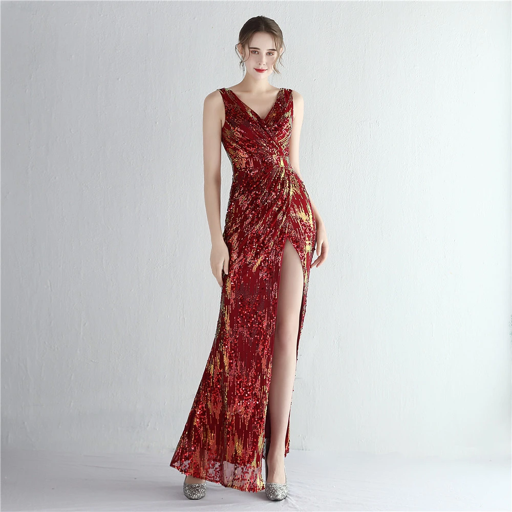 New Sequins Celebrity Banquet Temperament Split Long Sequins Aura Queen Dinner Fishtail Skirt