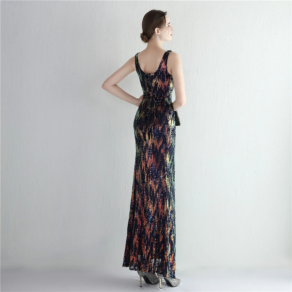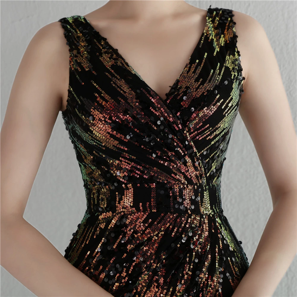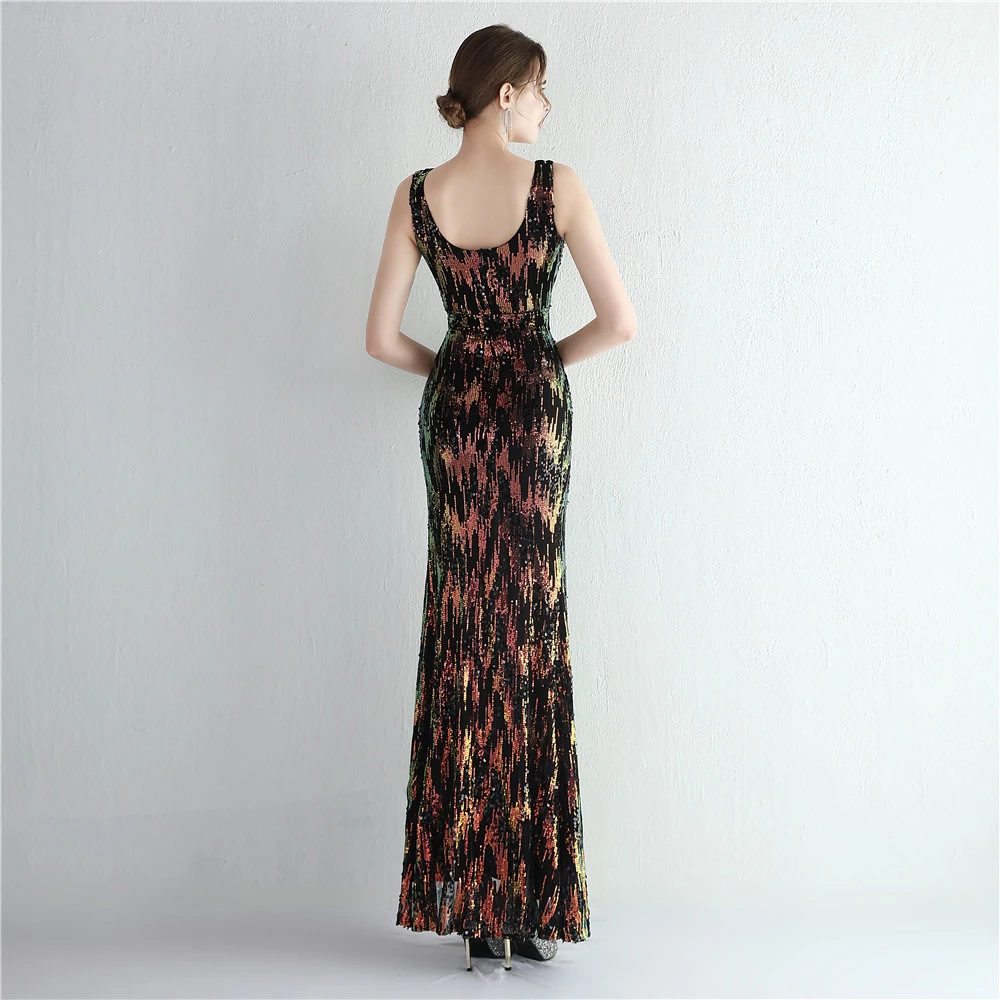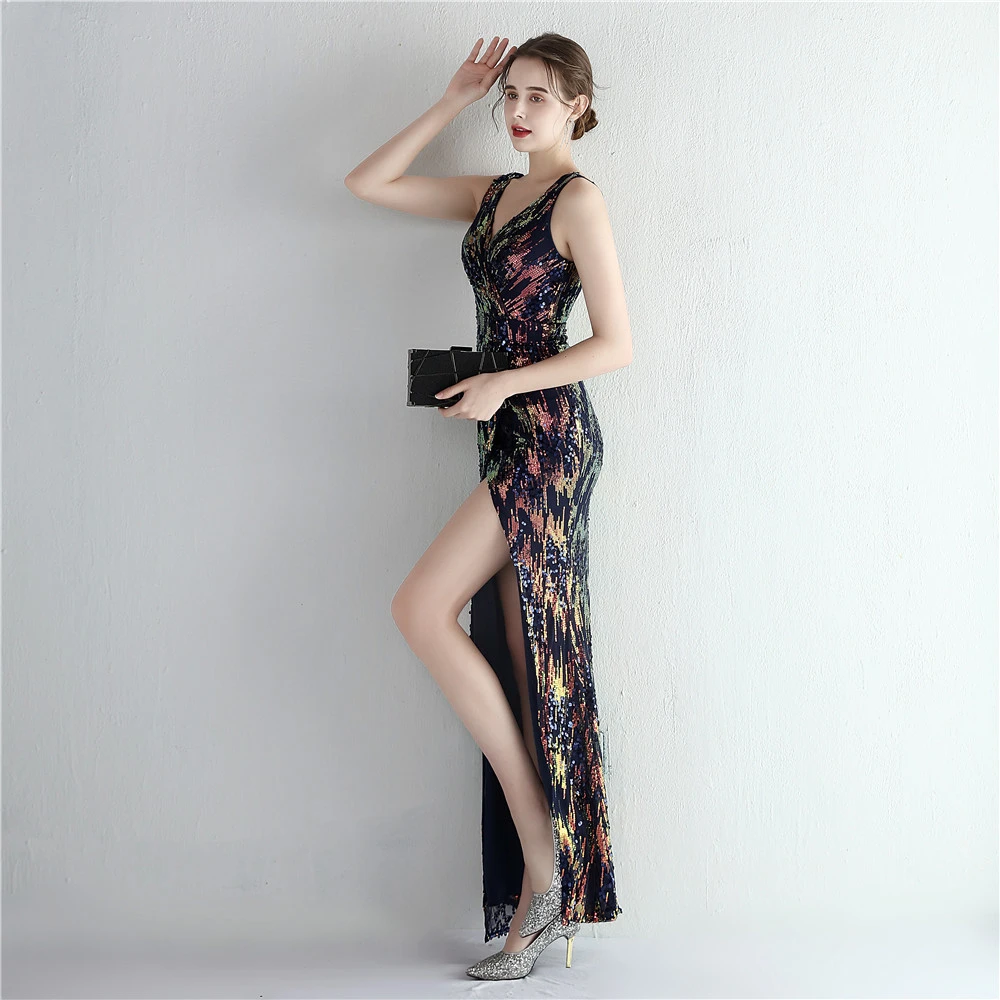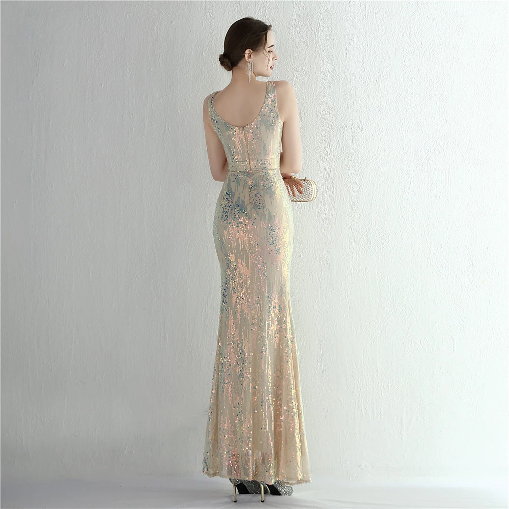 New Sequins Celebrity Banquet Temperament Split Long Sequins Aura Queen Dinner Fishtail Skirt