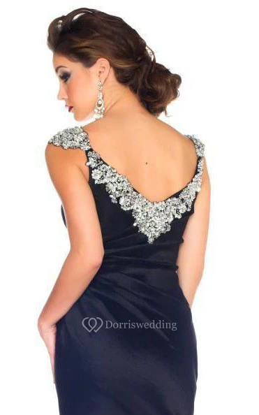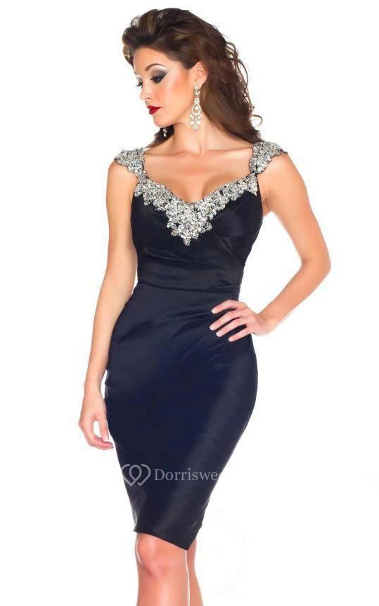 New Sexy Cap Sleeve Scoop Neck Crystals Beadings Satin Sheath Short Dresses