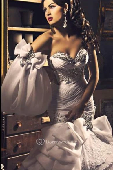 New Sexy Sweetheart Wedding Dresses Organza Mermaid Bling Evening Gowns