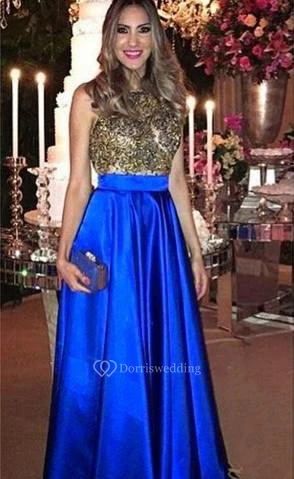 Newest Beadings Royal Blue Evening Dress A-line Zipper Sleeveless