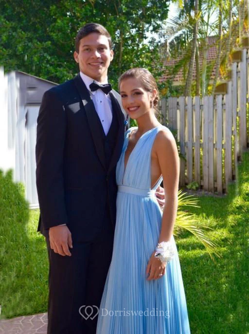 Newest Deep V-neck A-line Prom Dress Sleeveless Floor-length