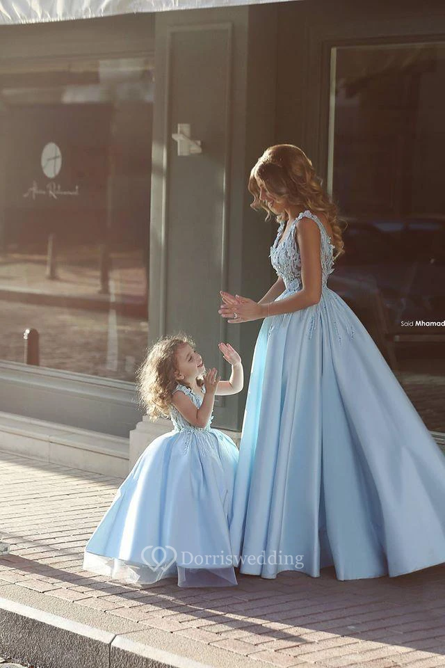Newest Flowers Straps A-line Mother and Daughter Prom Dress Ball Gown