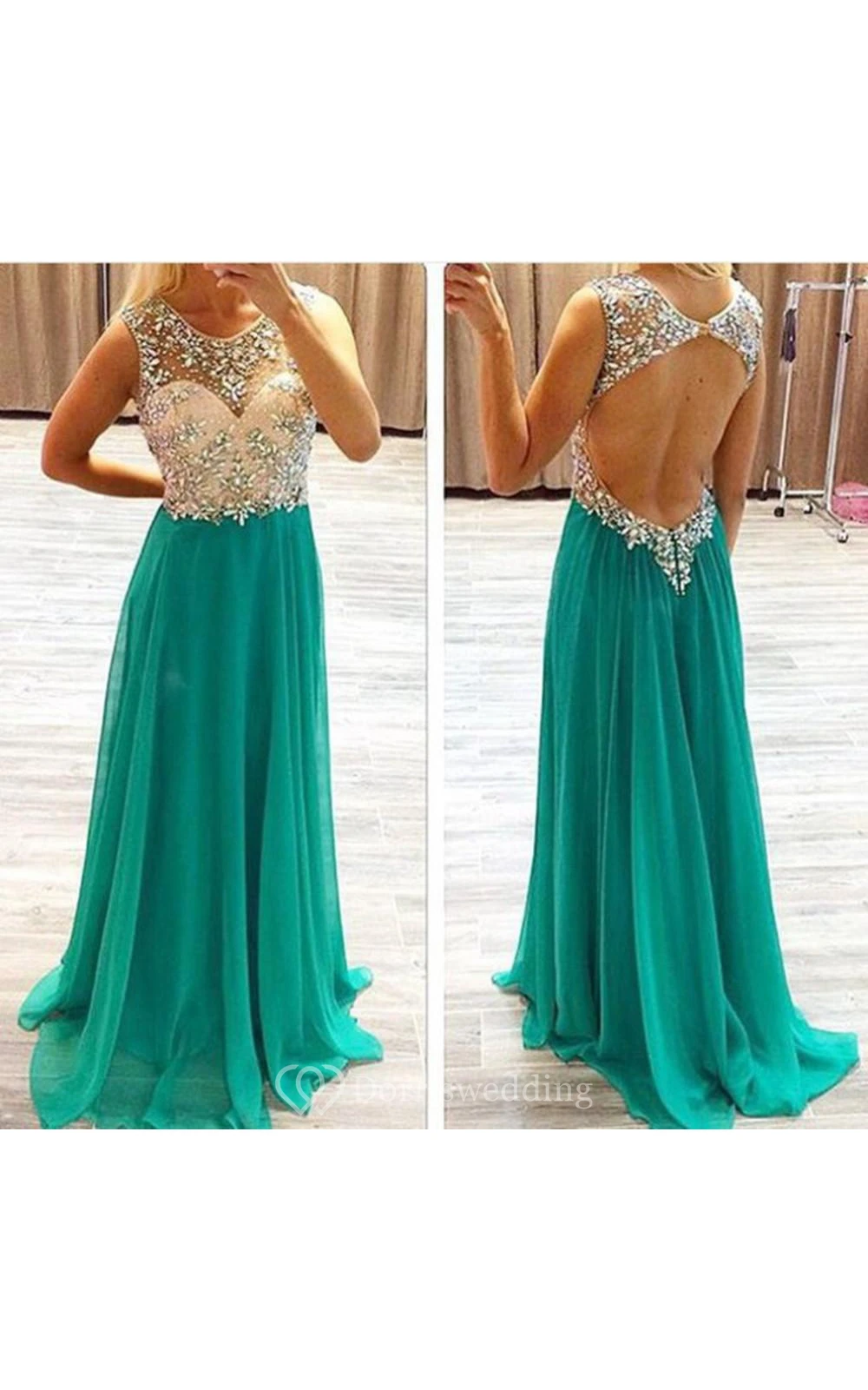 Newest Illusion Crystals Chiffon Evening Dress Zipper Sweep Train