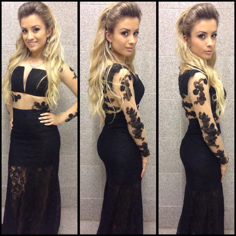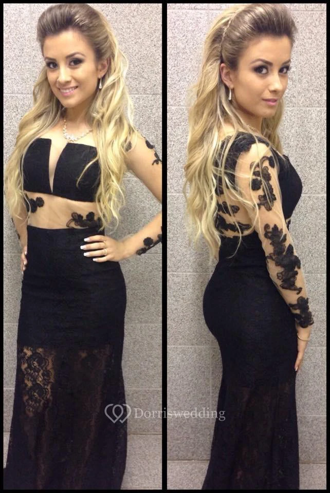 Newest Lace Appliques Black Evening Dress Long Sleeve