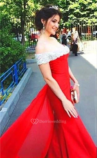 Newest Off-the-shoulder Red Mermaid Evening Dress Court Train