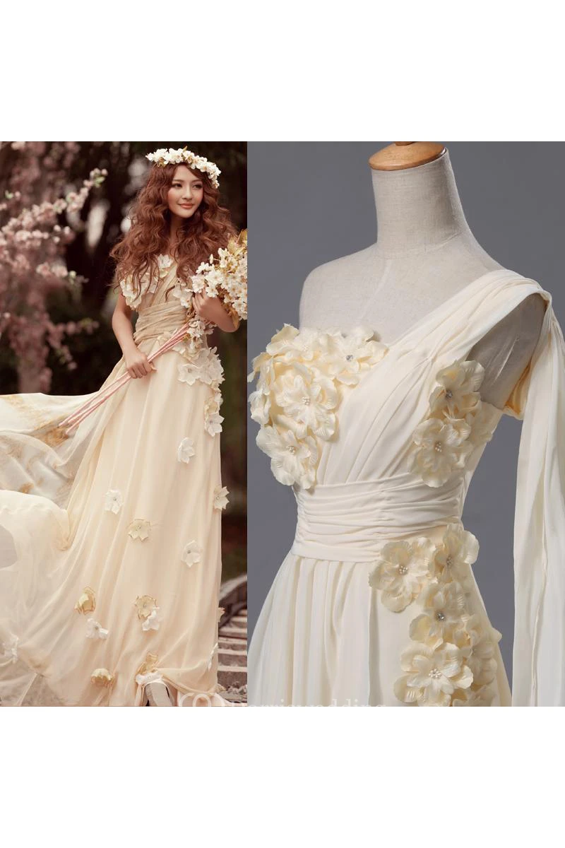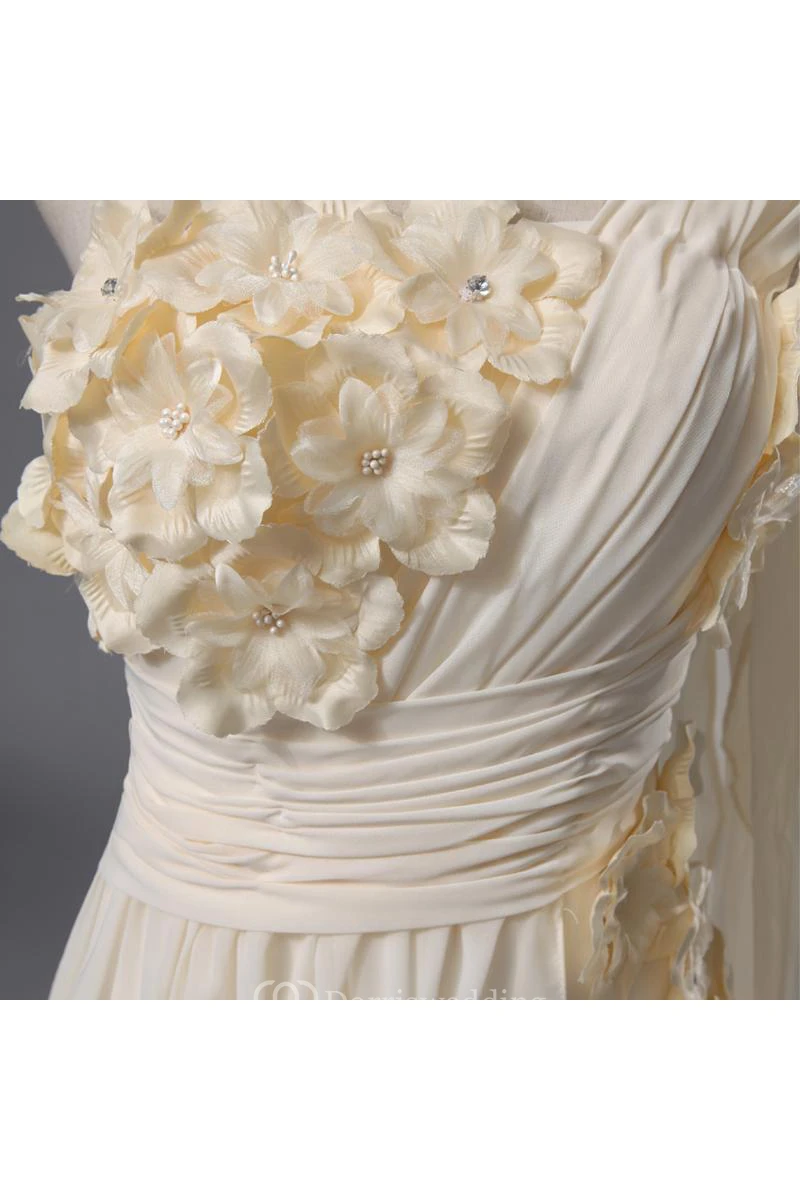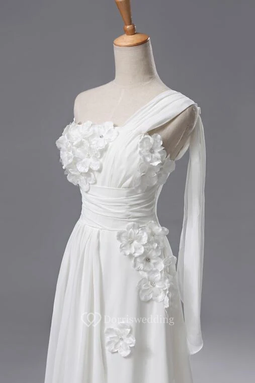 Newest One Shoulder Flowers Wedding Dress A-line Chiffon