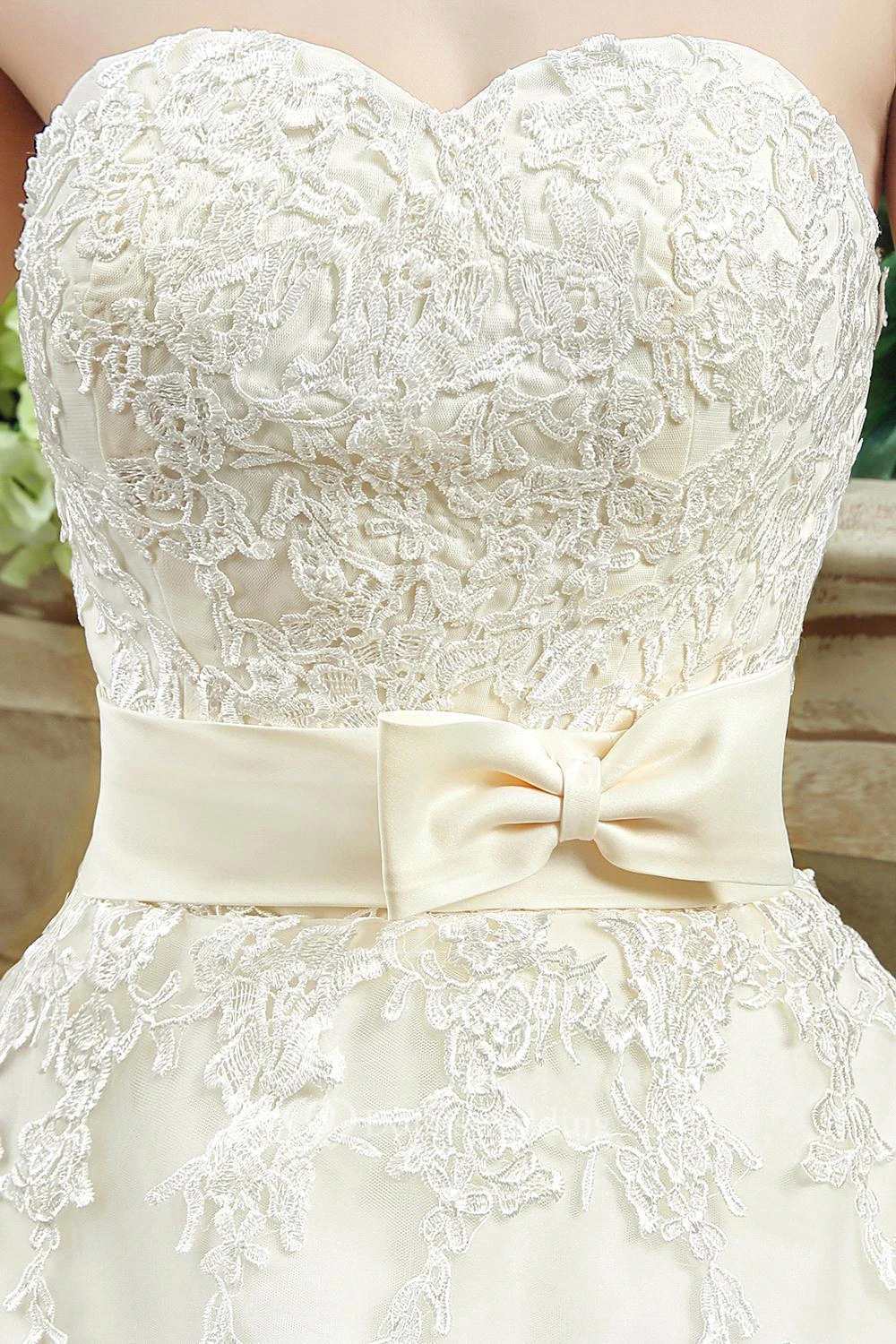 Newest Sweetheart Lace Appliques Princess Wedding Dress Bowknot Sweep Train