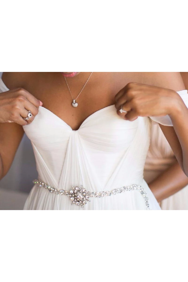 Newest White Off-the-shoulder Chiffon Wedding Dress With Beadings