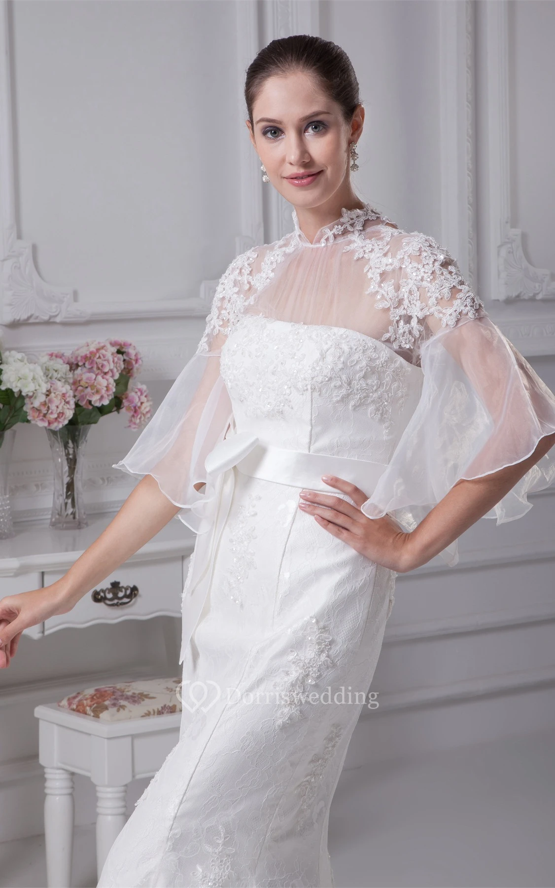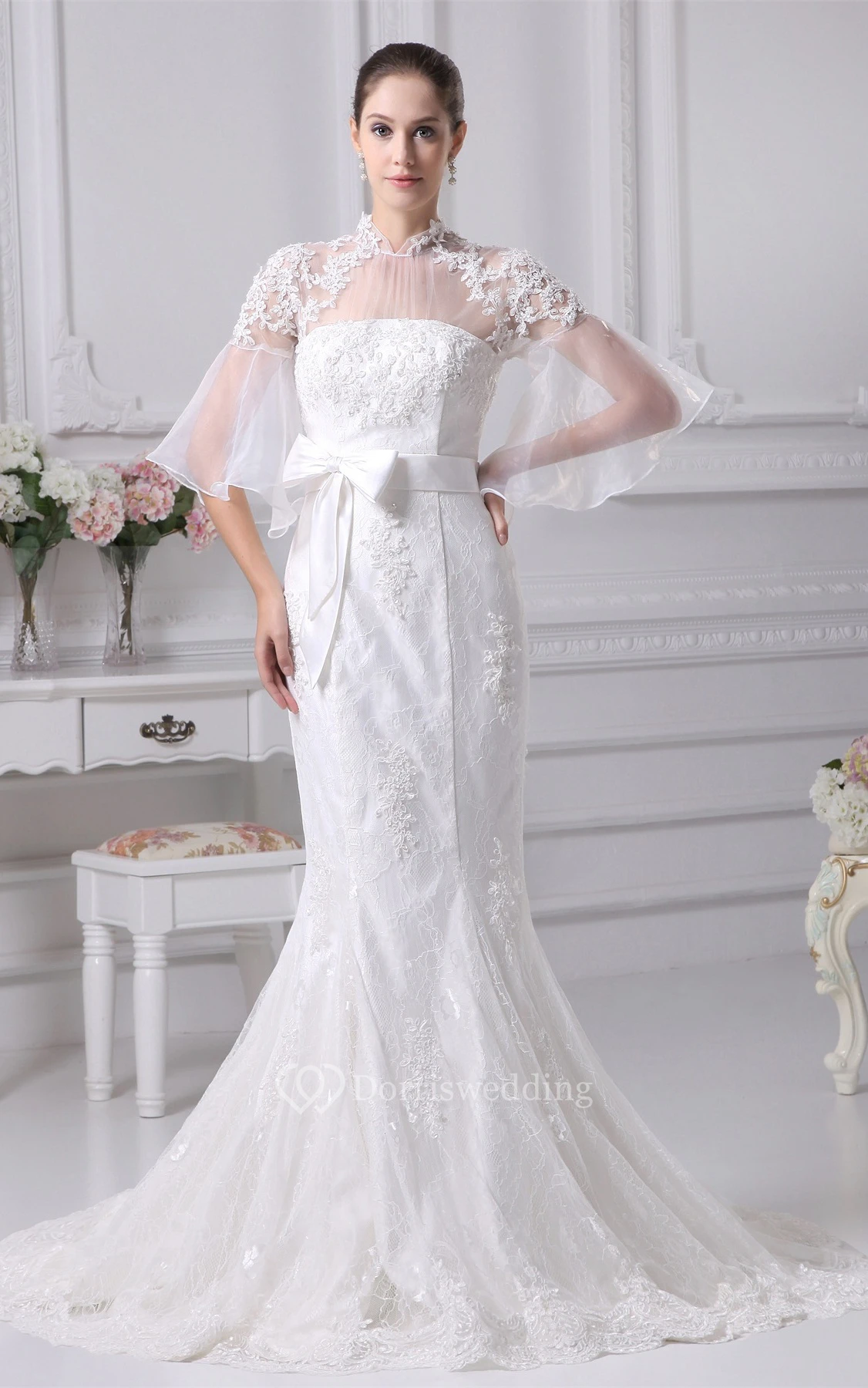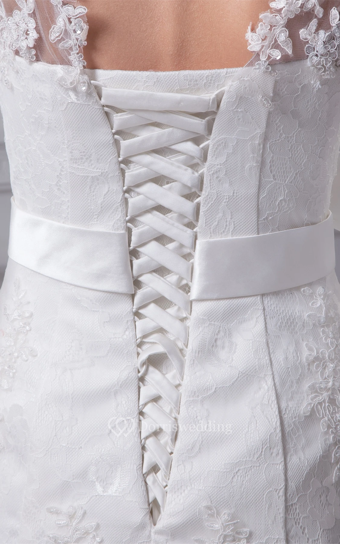 Noble Appliqued Mermaid Illusion Neckline and Dress With Ribbon