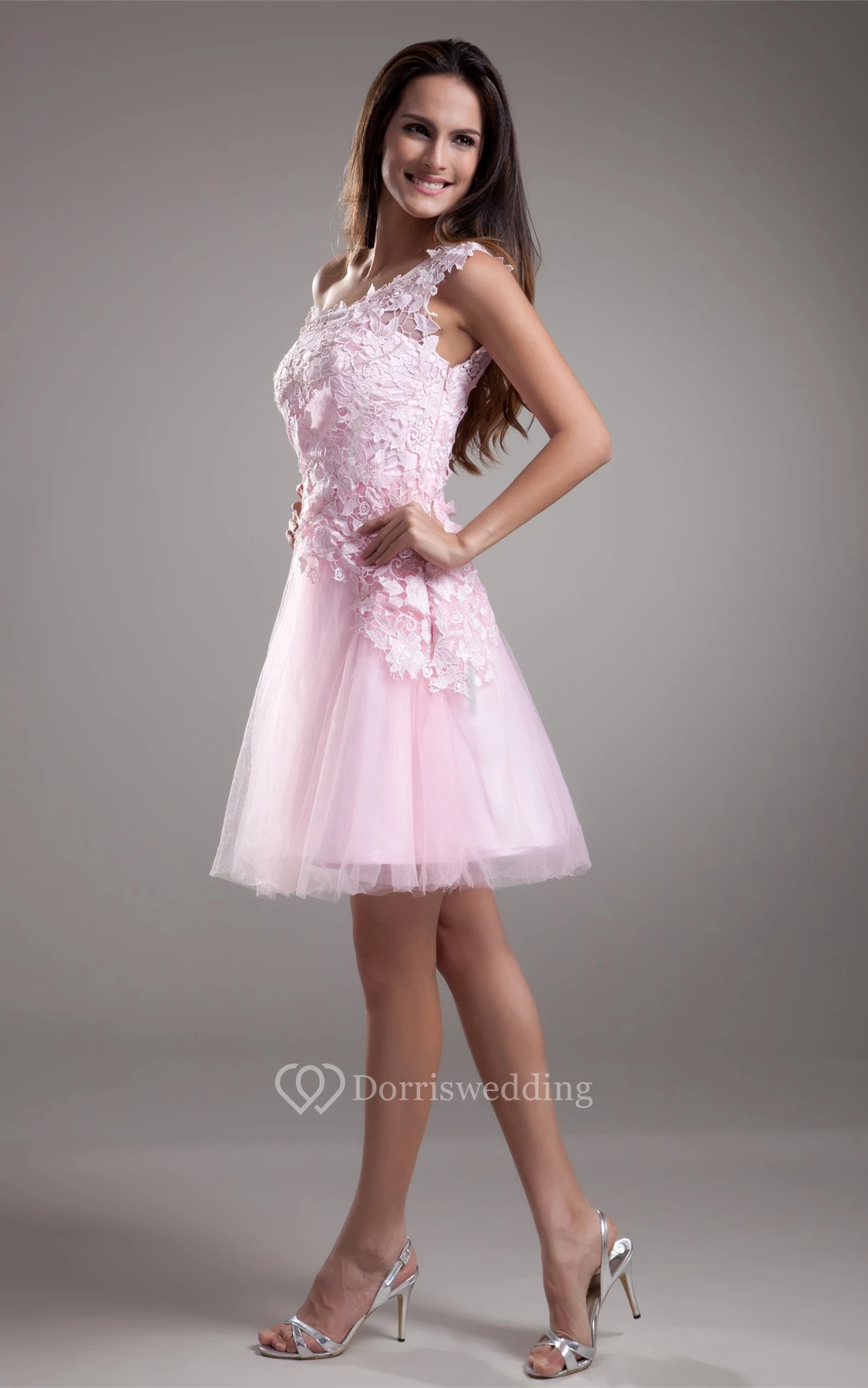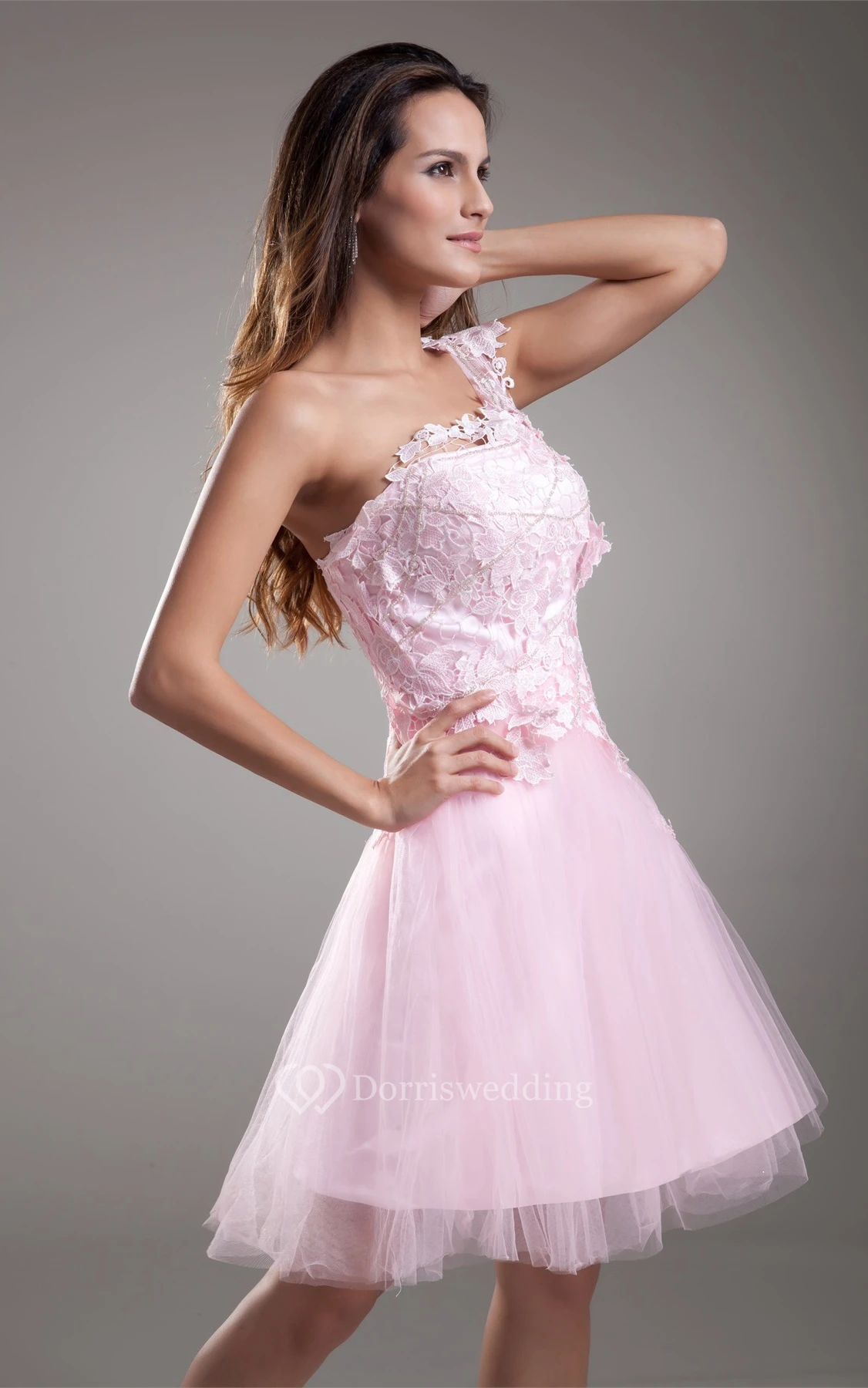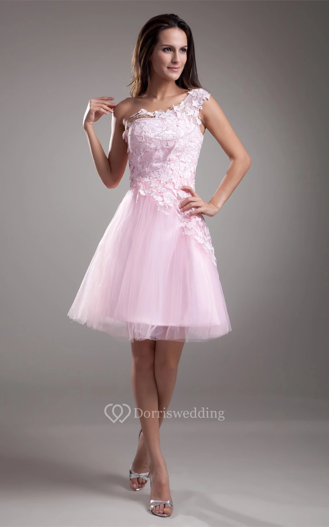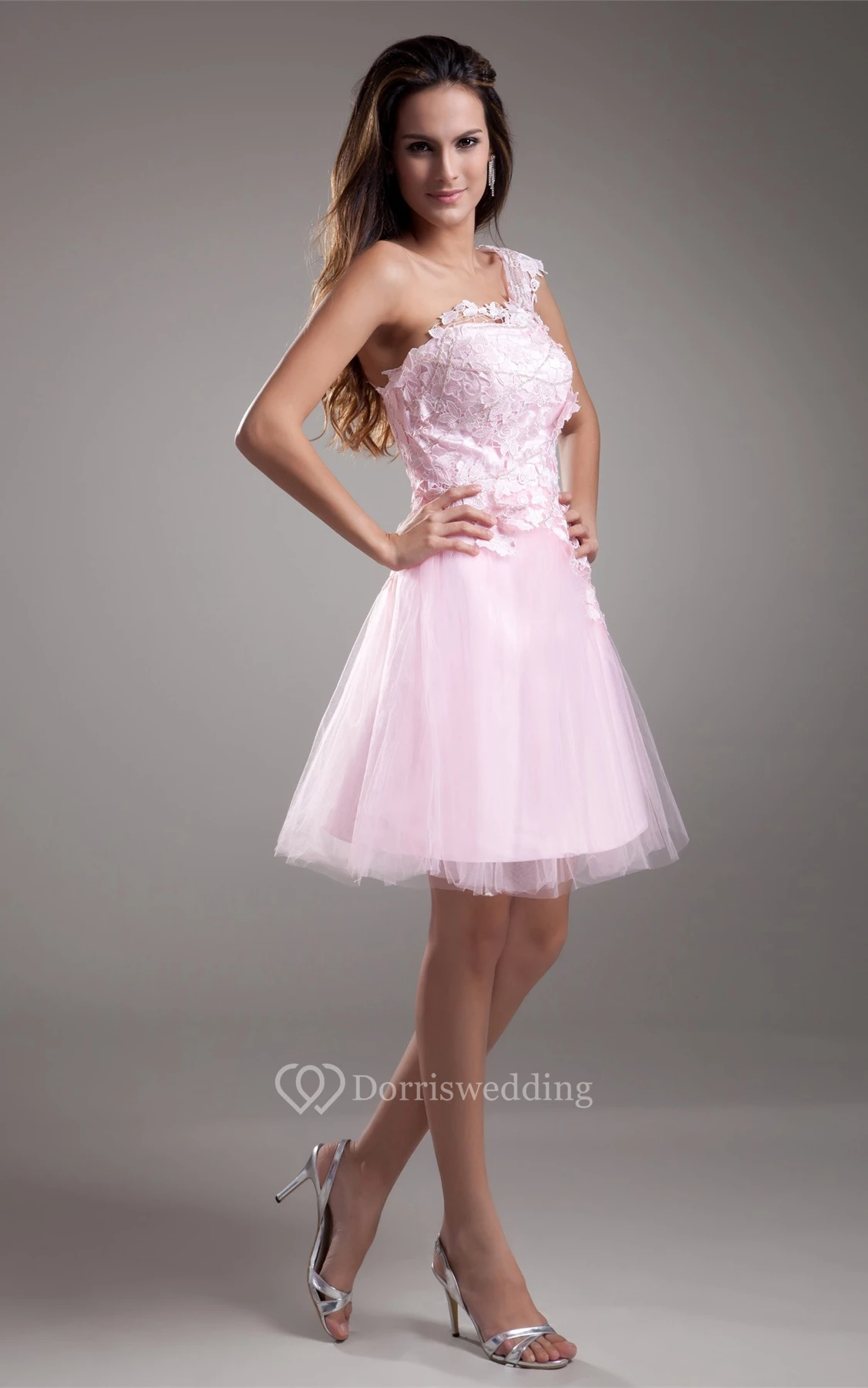 Noble Appliqued Mini One Shoulder a Line Sleeveless Special Occasion Dresses