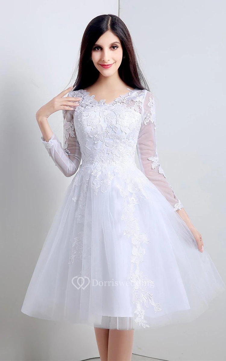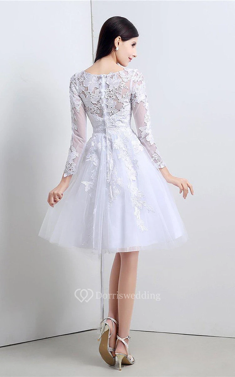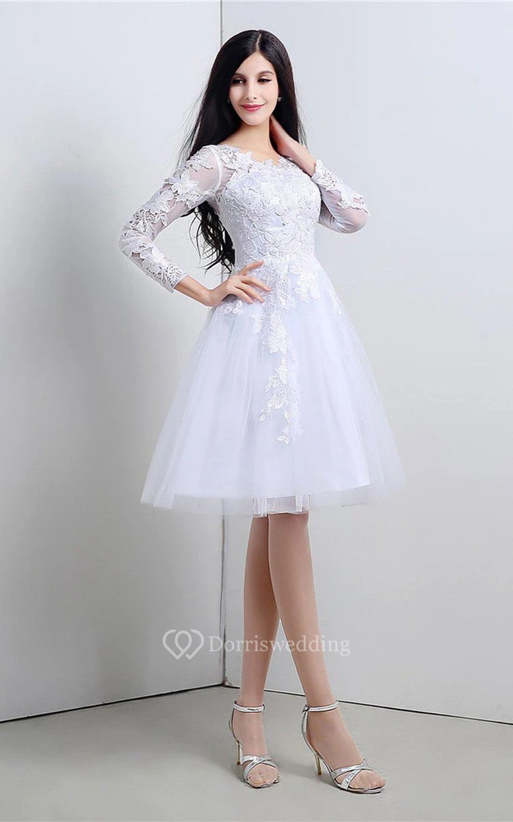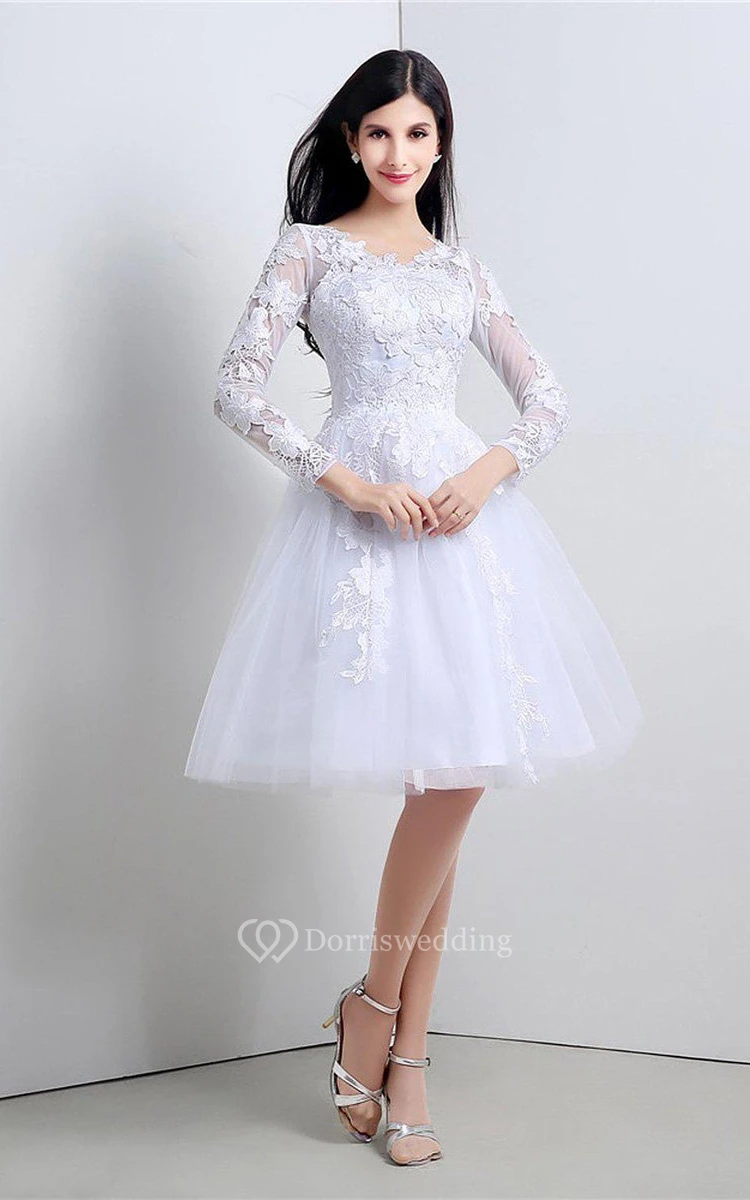 Noble Knee-length Lace and Tulle Dress With Long Sleeves