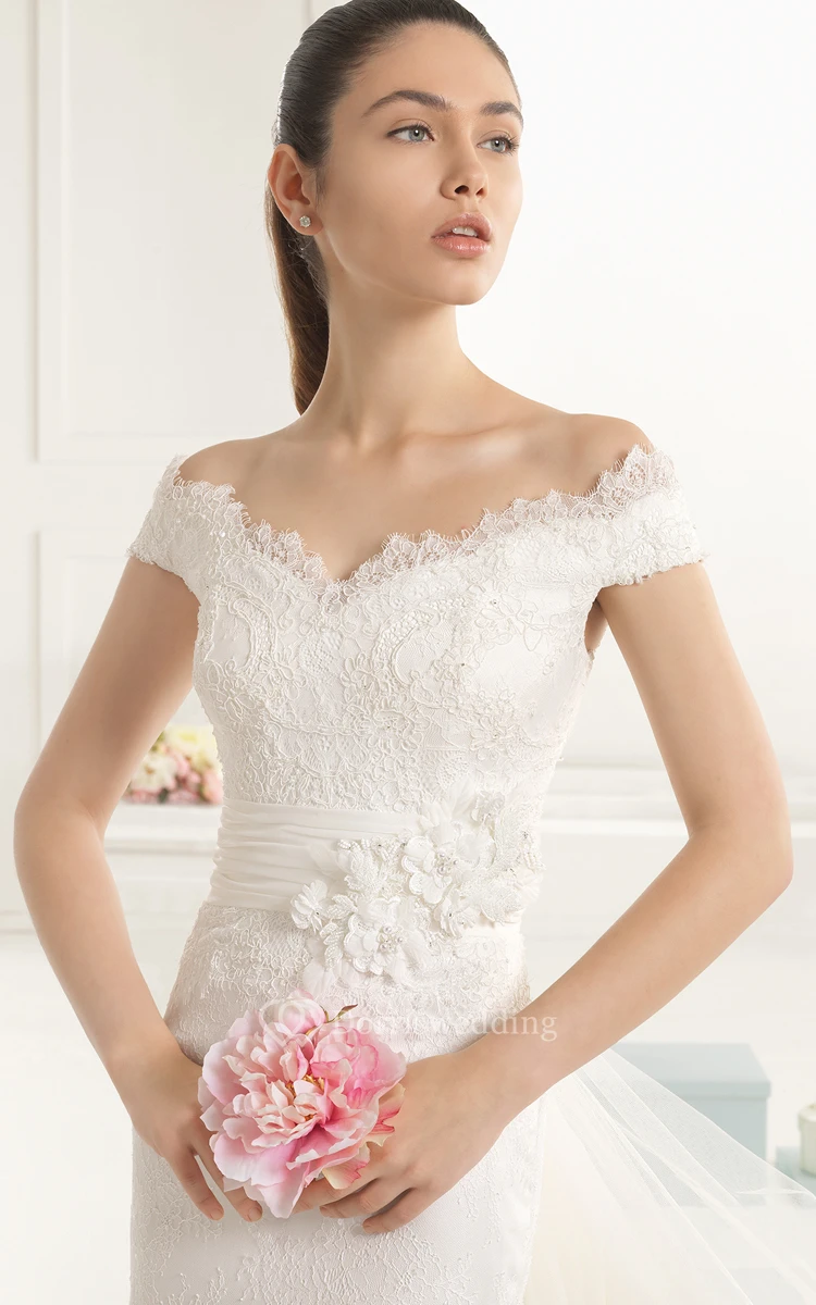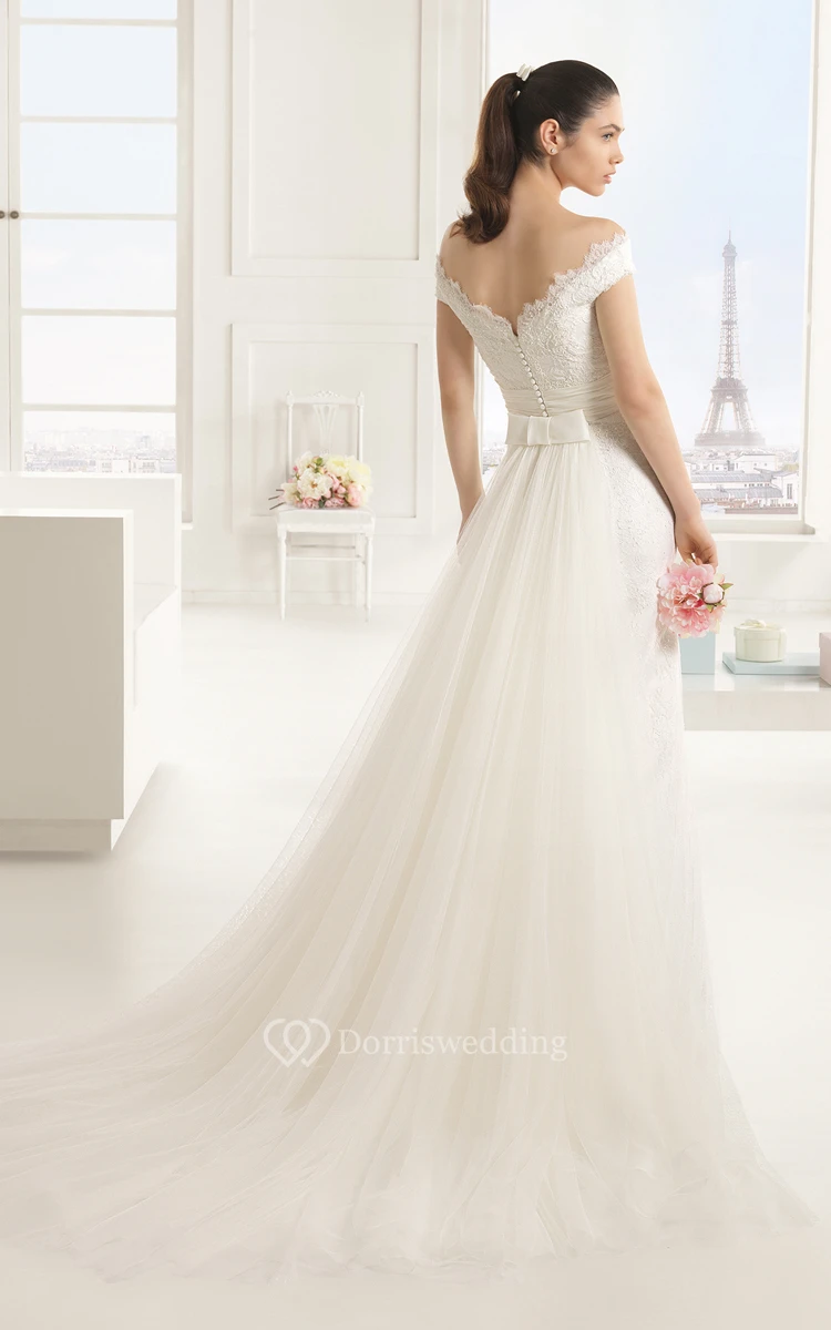 Noble Lace Off-Shoulder Dress With Watteau Train