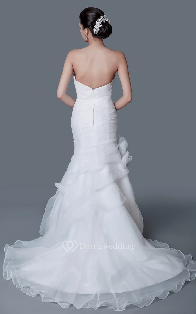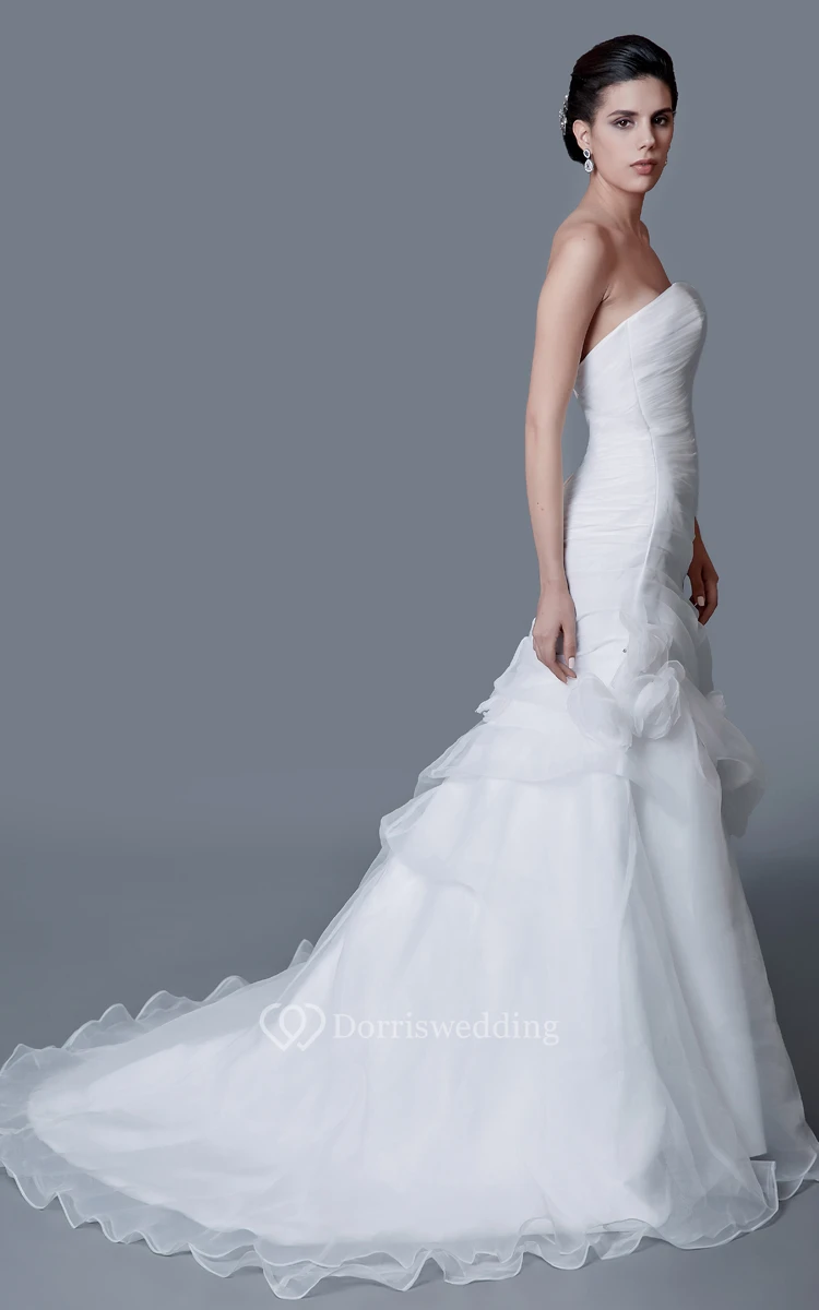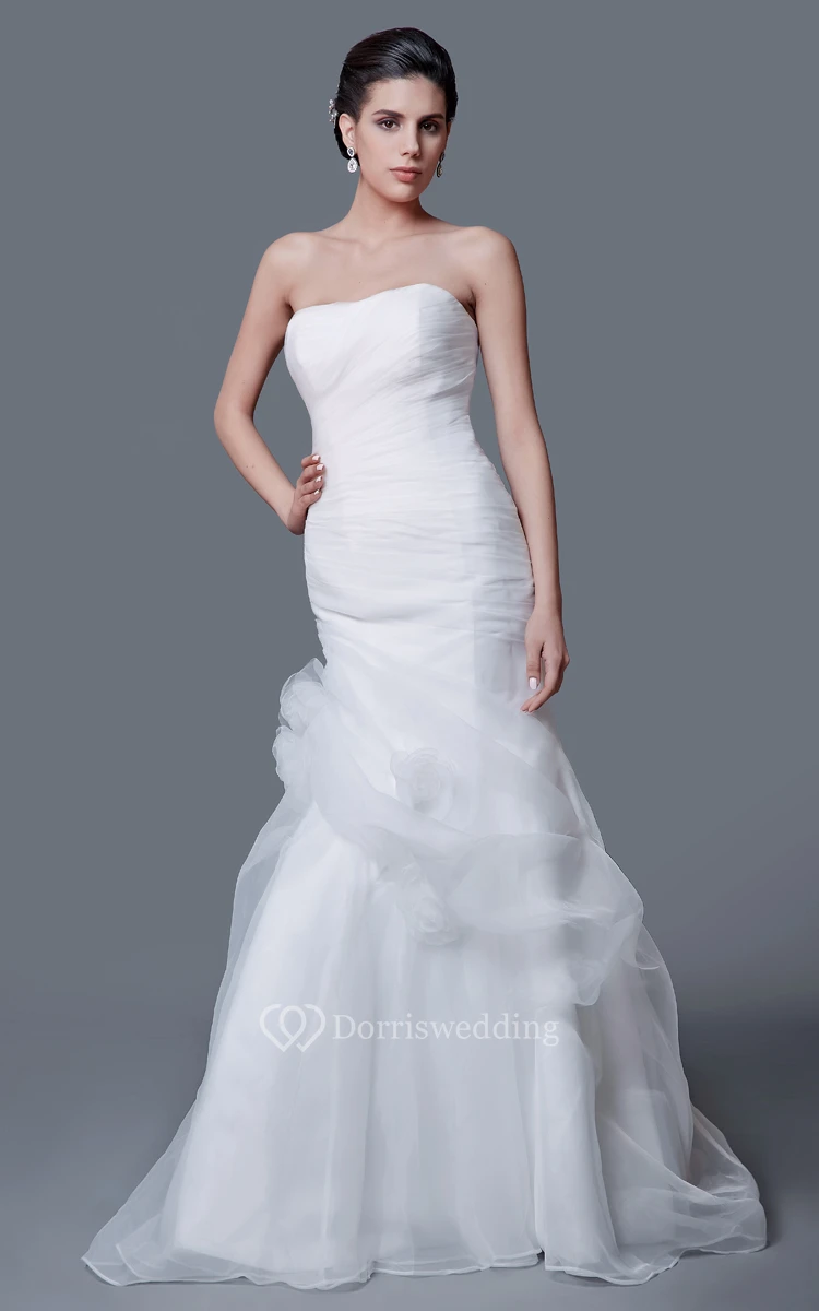Noble Strapless Organza Mermaid Dress With Flower